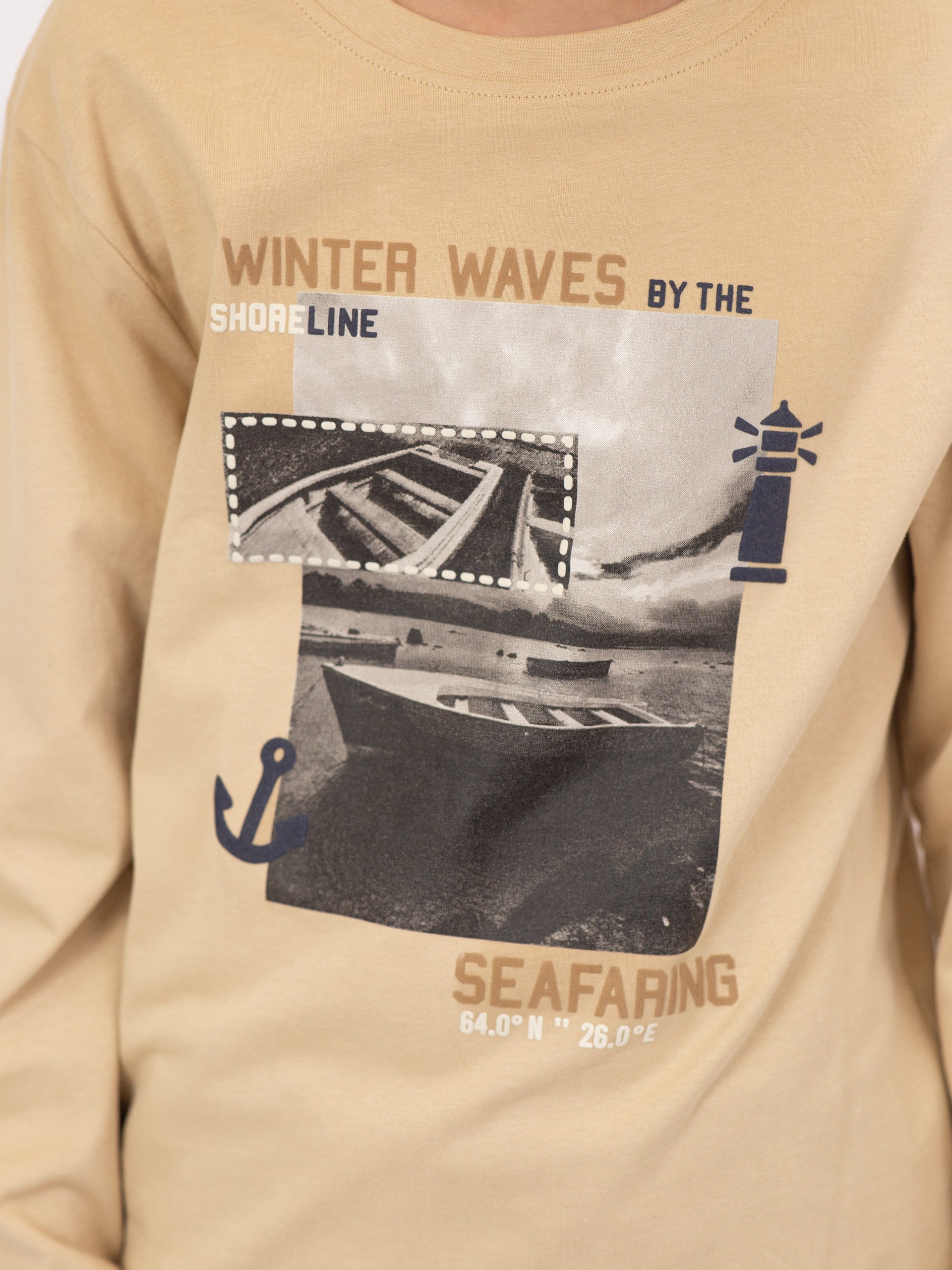 Удобная футболка с длинным рукавом для мальчика, выполнена из 100% хлопка — мягкого, дышащего и приятного к телу материала.