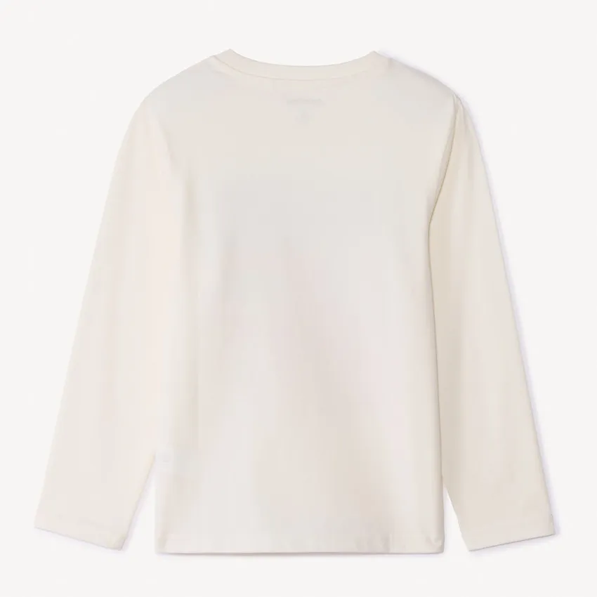 Футболка с длинными рукавами из мягкого трикотажа. Однотонная модель с круглым вырезом и стильным принтом на груди. Спинка — без рисунков. Подходит для повседневной носки.