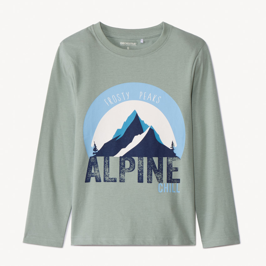 Футболка с длинным рукавом для мальчика из 100% хлопка — удобная и дышащая модель для повседневной носки. Яркий принт по центру добавляет стильный акцент, делая образ ярким и выразительным. Ткань приятна к телу, обеспечивает комфорт в течение всего дня и сохраняет форму после стирки.