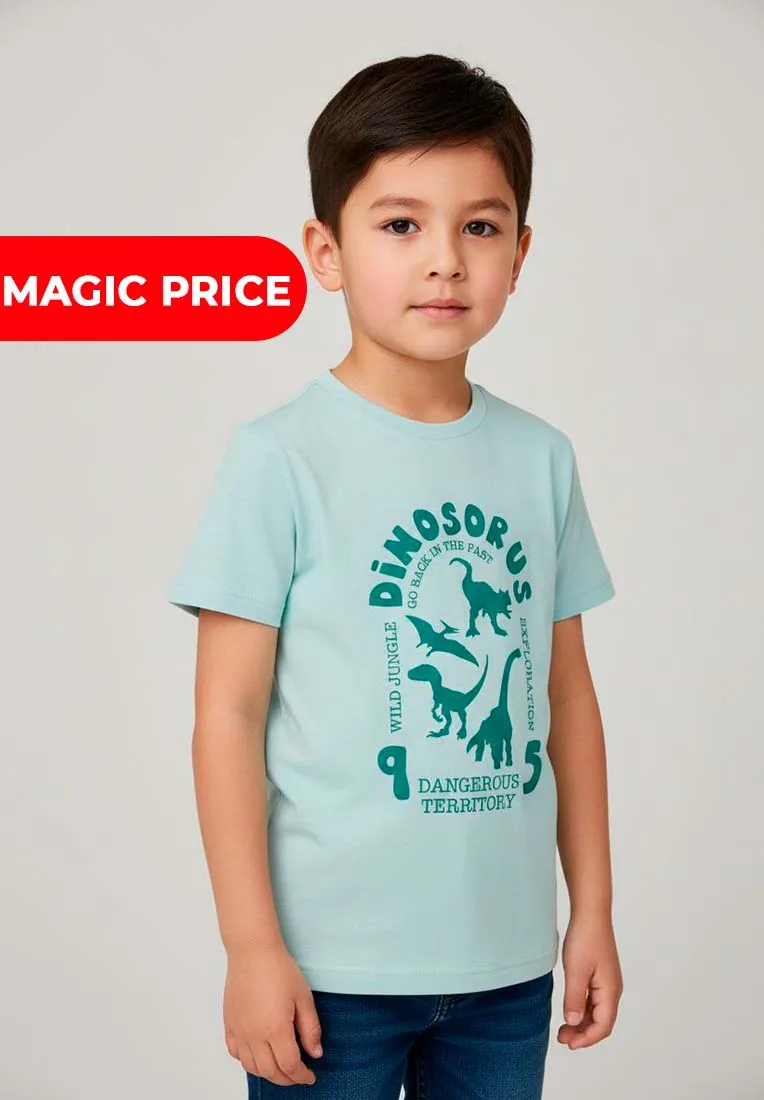 Футболка с ярким и забавным принтом станет любимой вещью в детском гардеробе. Модель выполнена из мягкого трикотажа в однотонном цвете, который приятно ощущается на коже и подходит для повседневной носки.