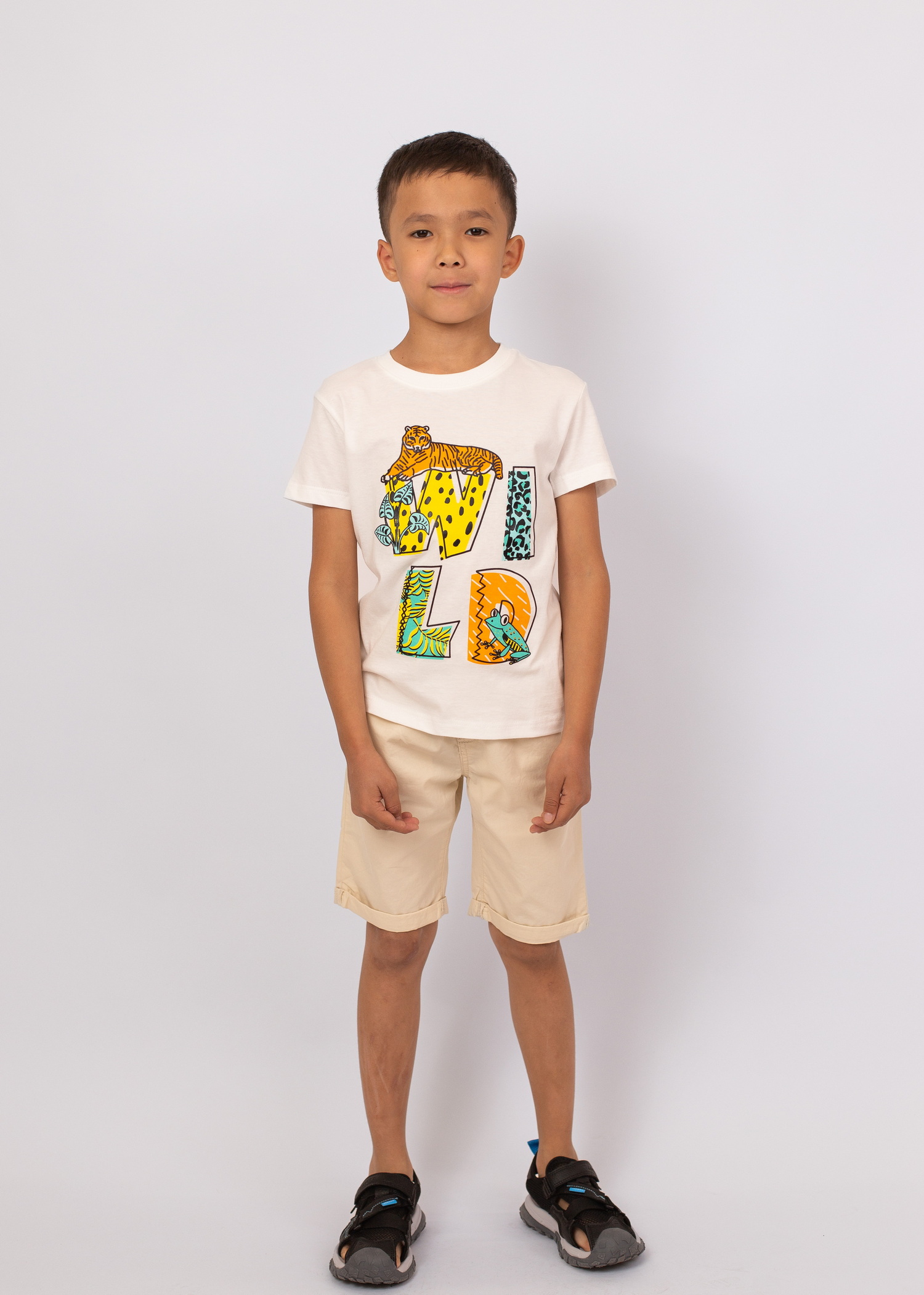 Футболка с короткими рукавами для мальчика из 100% хлопка — удобная и стильная модель для повседневной носки.