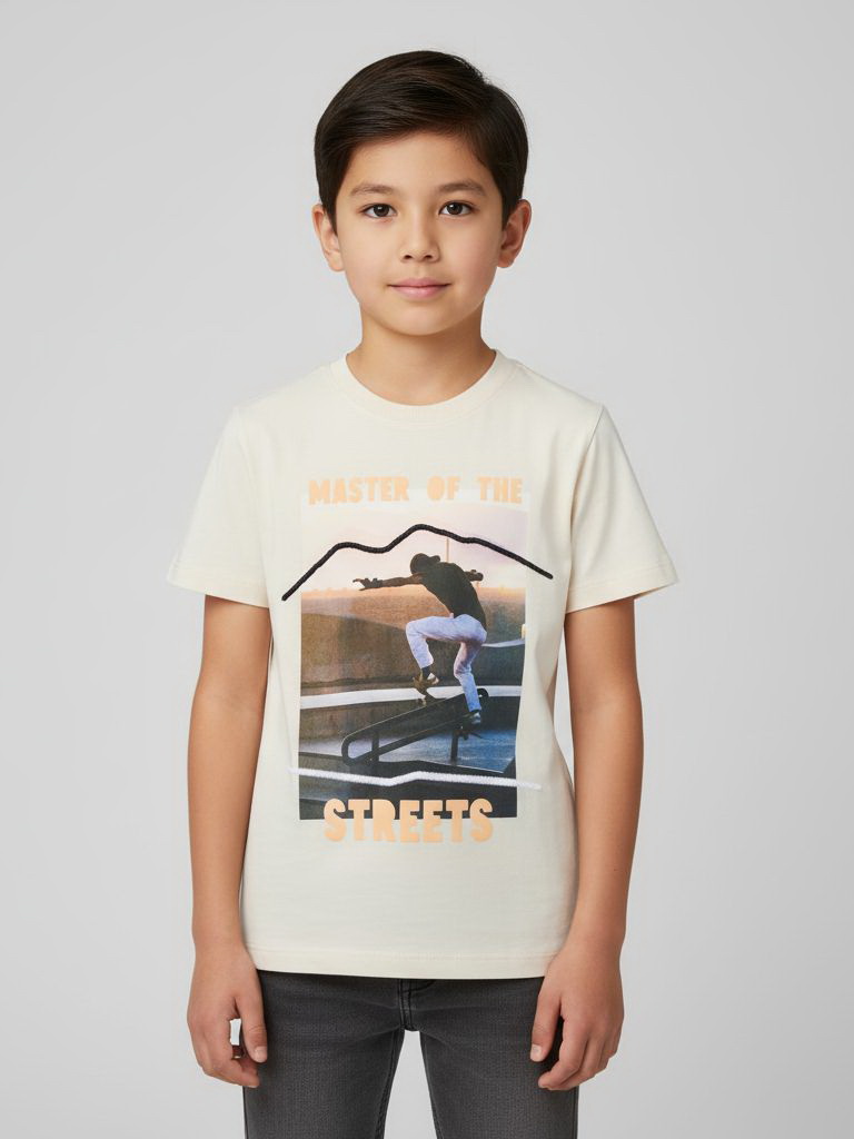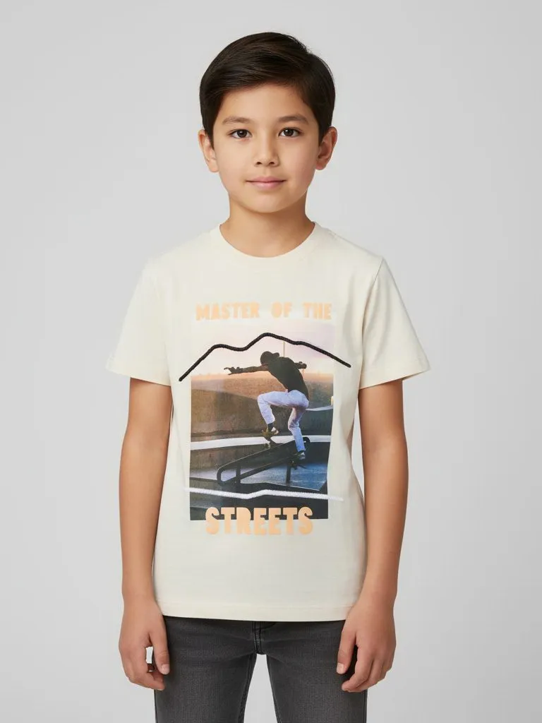 Спереди расположен фотопринт со скейтбордистом и надписью “Master of the Streets”, дополненный декоративной вышивкой, которая придаёт дизайну более выразительный и современный вид.