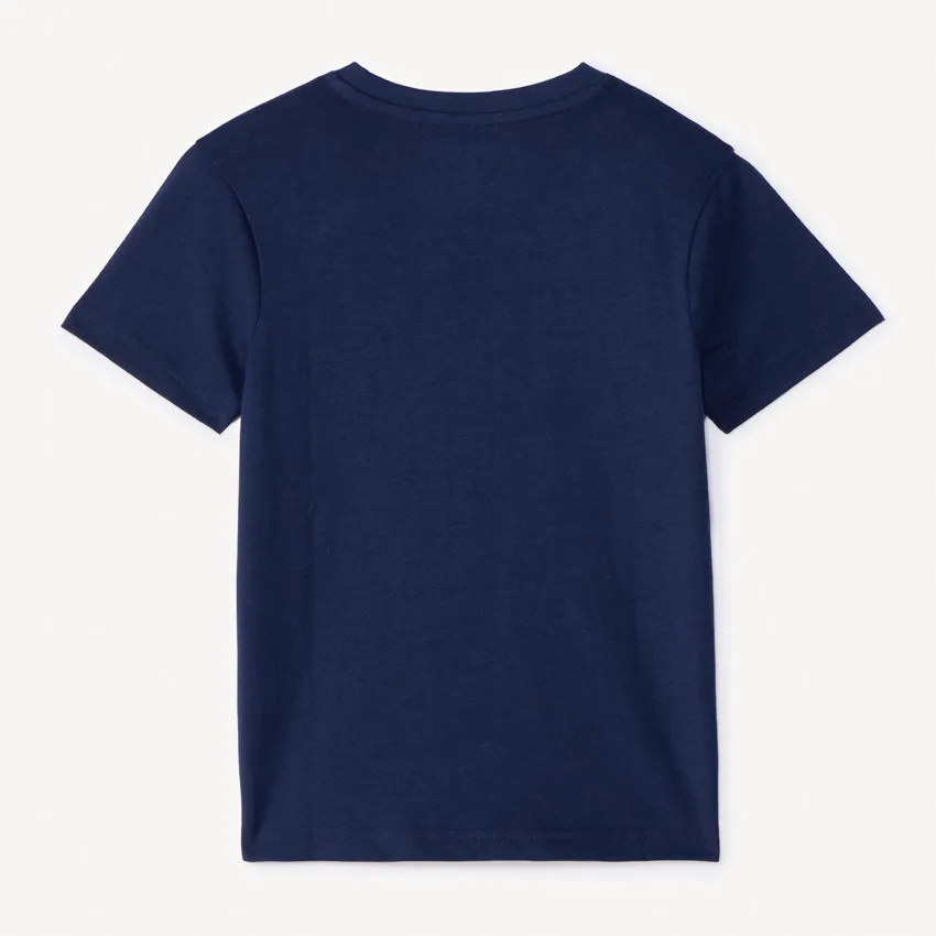 Модель дополнена круглым вырезом и короткими рукавами, благодаря чему футболка отлично подходит для прогулок и активных игр.
