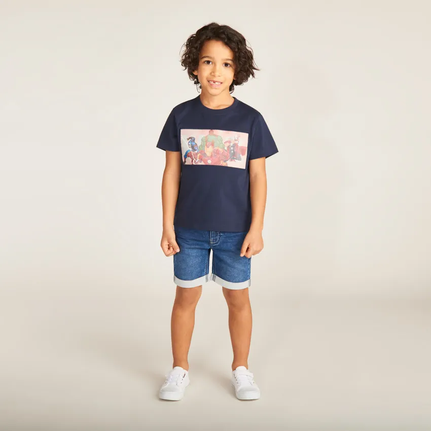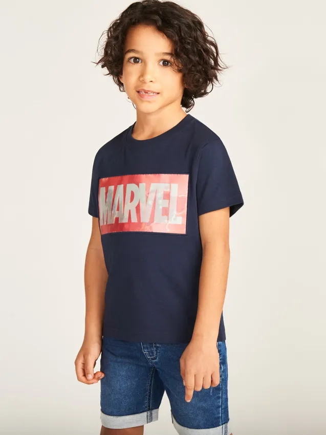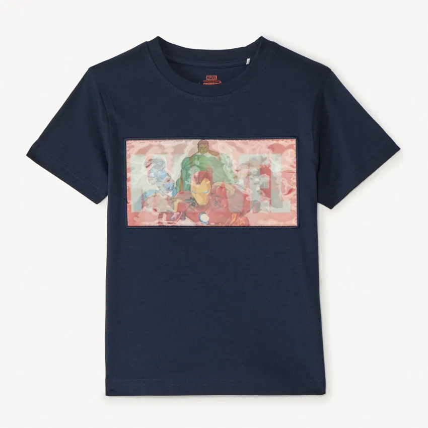 Спереди расположен яркий принт с логотипом Marvel и героями Avengers с эффектом смены изображения при движении.