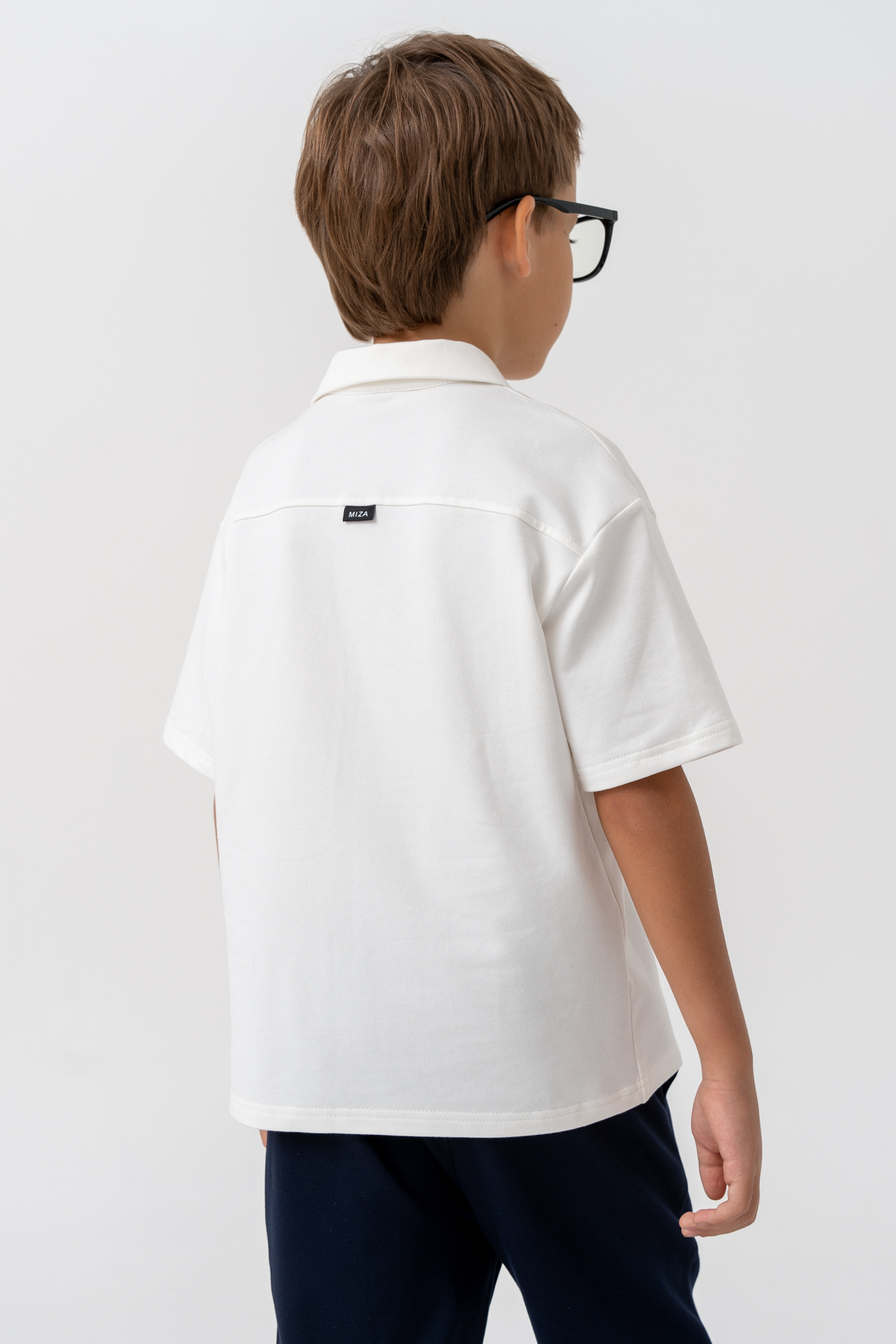 Уютная рубашка-поло из мягкого футера — тёплый и практичный вариант для школы в прохладную погоду. Модель без застёжки, легко надевается через голову. Воротник-стойка придаёт образу аккуратность, а плотный трикотаж обеспечивает комфорт и тепло. Отлично сочетается с брюками, жилетами и джемперами.
