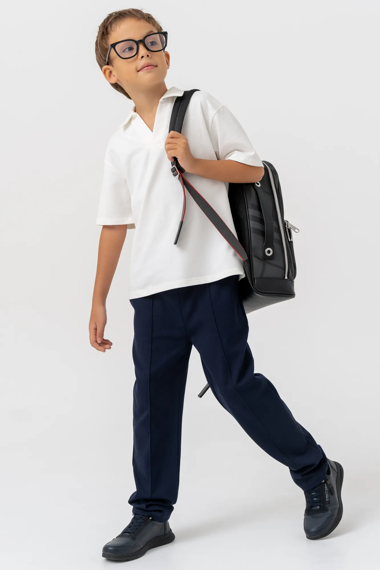 Уютная рубашка-поло из мягкого футера — тёплый и практичный вариант для школы в прохладную погоду. Модель без застёжки, легко надевается через голову. Воротник-стойка придаёт образу аккуратность, а плотный трикотаж обеспечивает комфорт и тепло. Отлично сочетается с брюками, жилетами и джемперами.