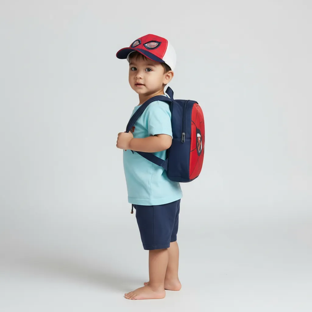 Кепка Orchestra для мальчика выполнена из 100% хлопка и оформлена в стиле Человека-паука. На передней части расположены линзовидные принты глаз супергероя, создающие эффект объёма и придающие образу яркий, стильный акцент. Сзади предусмотрен регулируемый фиксатор — ремешок с отверстиями, позволяющий легко подобрать удобный размер. Кепка лёгкая, дышащая и комфортная, отлично подходит для повседневной носки в тёплое время года.