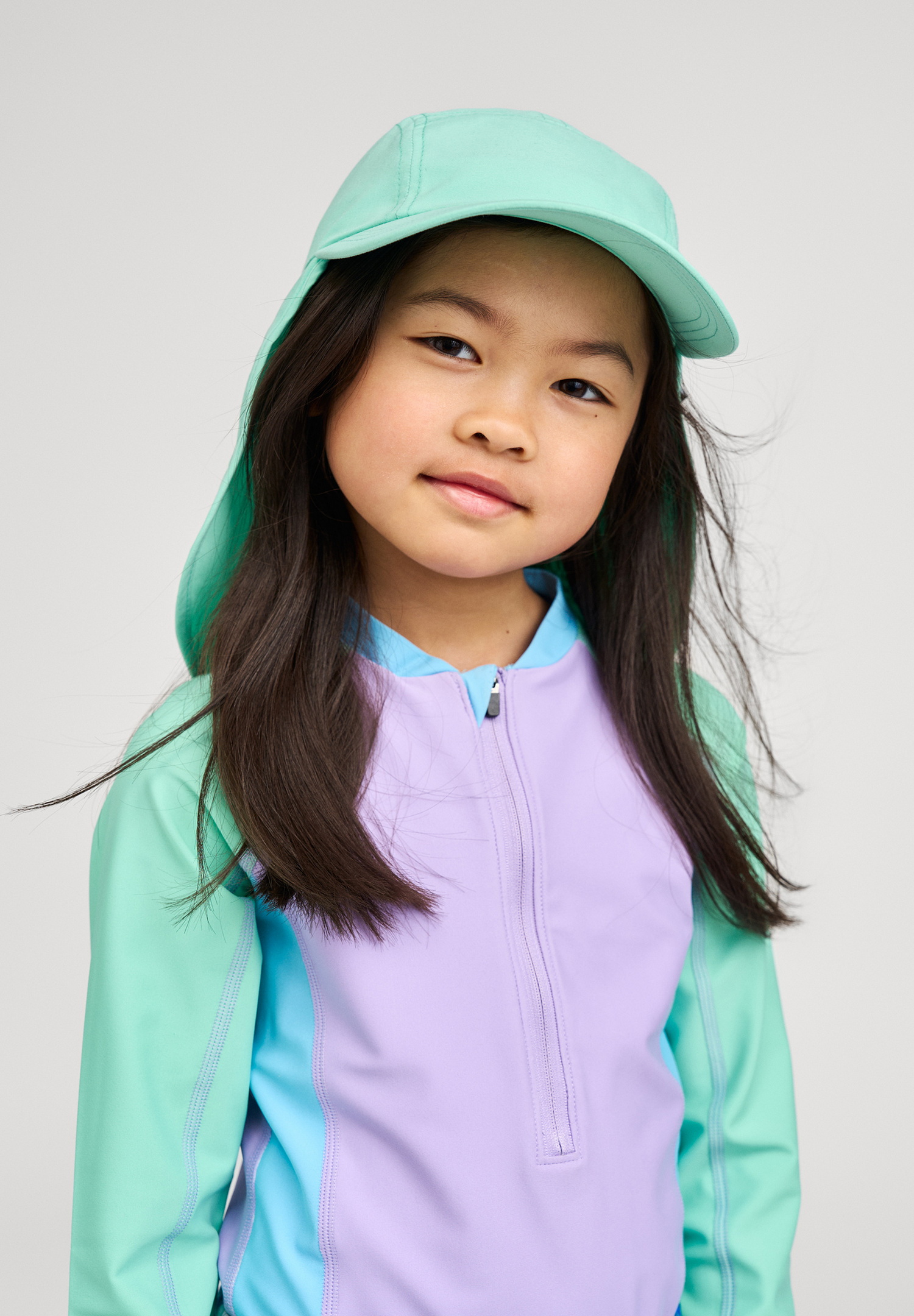Эта легкая модель без подкладки изготовлена из материала с фактором УФ-защиты 50+. Козырек закрывает лицо, а задняя кромка защищает шею от солнца. Содержит переработанные волокна полиэстера. SunProof: фактор защиты от ультрафиолета 50+. Легкий стиль, без подкладки. Длинный отворот защищает шею сзади.
