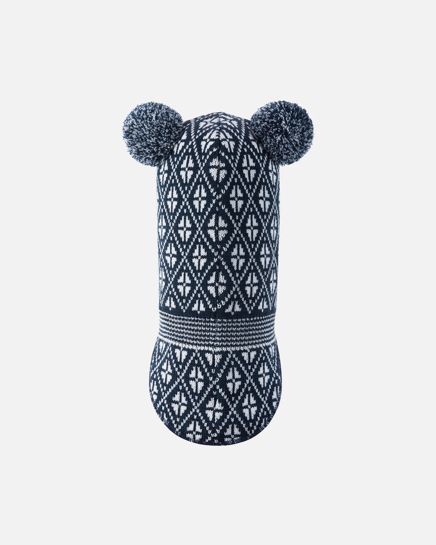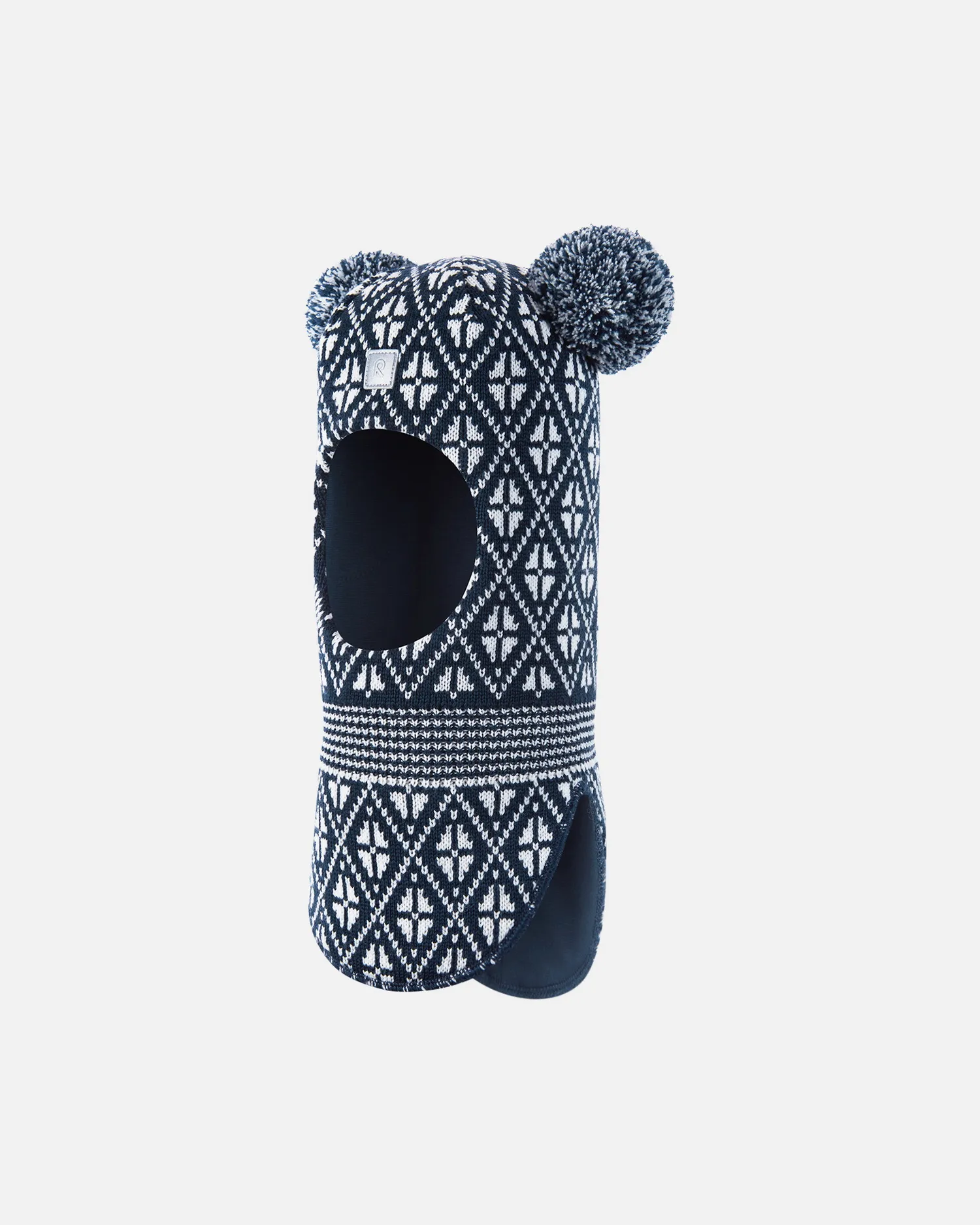 Детская шерстяная балаклава: под теплой 100% мериносовой вязкой находится мягкая хлопковая подкладка, а ветрозащитные наушники защищают от ветра.