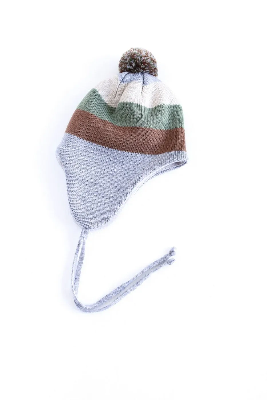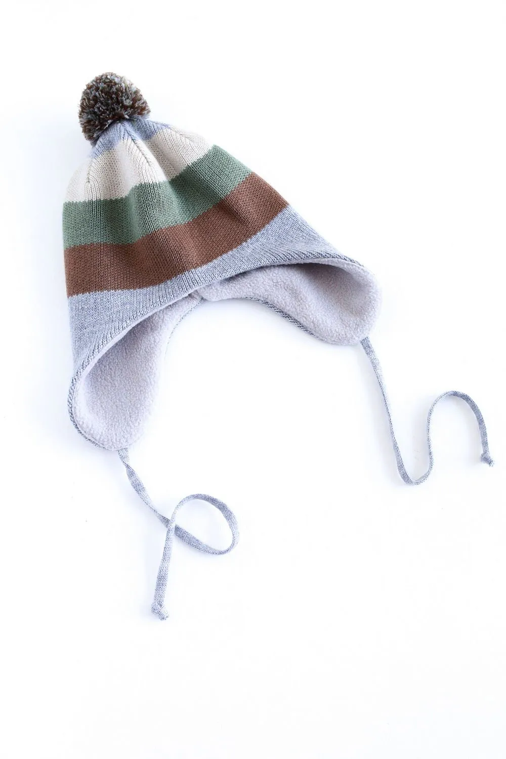 Зимняя вязаная шапка для малыша. Модель выполнена из мягкой пряжи (50% шерсть, 50% акрил) с плотной утолщённой вязкой, хорошо удерживающей тепло. Внутренняя подкладка из флиса (100% полиэстер) обеспечивает дополнительный комфорт и защиту от холода. Удлинённые ушки прикрывают уши, а декоративные завязки придают стильный акцент. Шапка рассчитана на температурный режим от –10°C до +5°C, что делает её отличным выбором для холодного сезона.