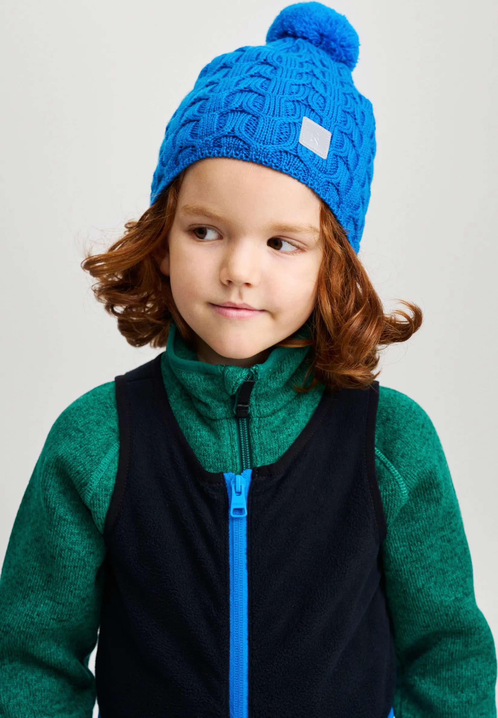 Детская шапка из мягкой мериносовой шерсти, которая прекрасно регулирует температуру. Ветрозащитные вставки защищают уши от ветра.