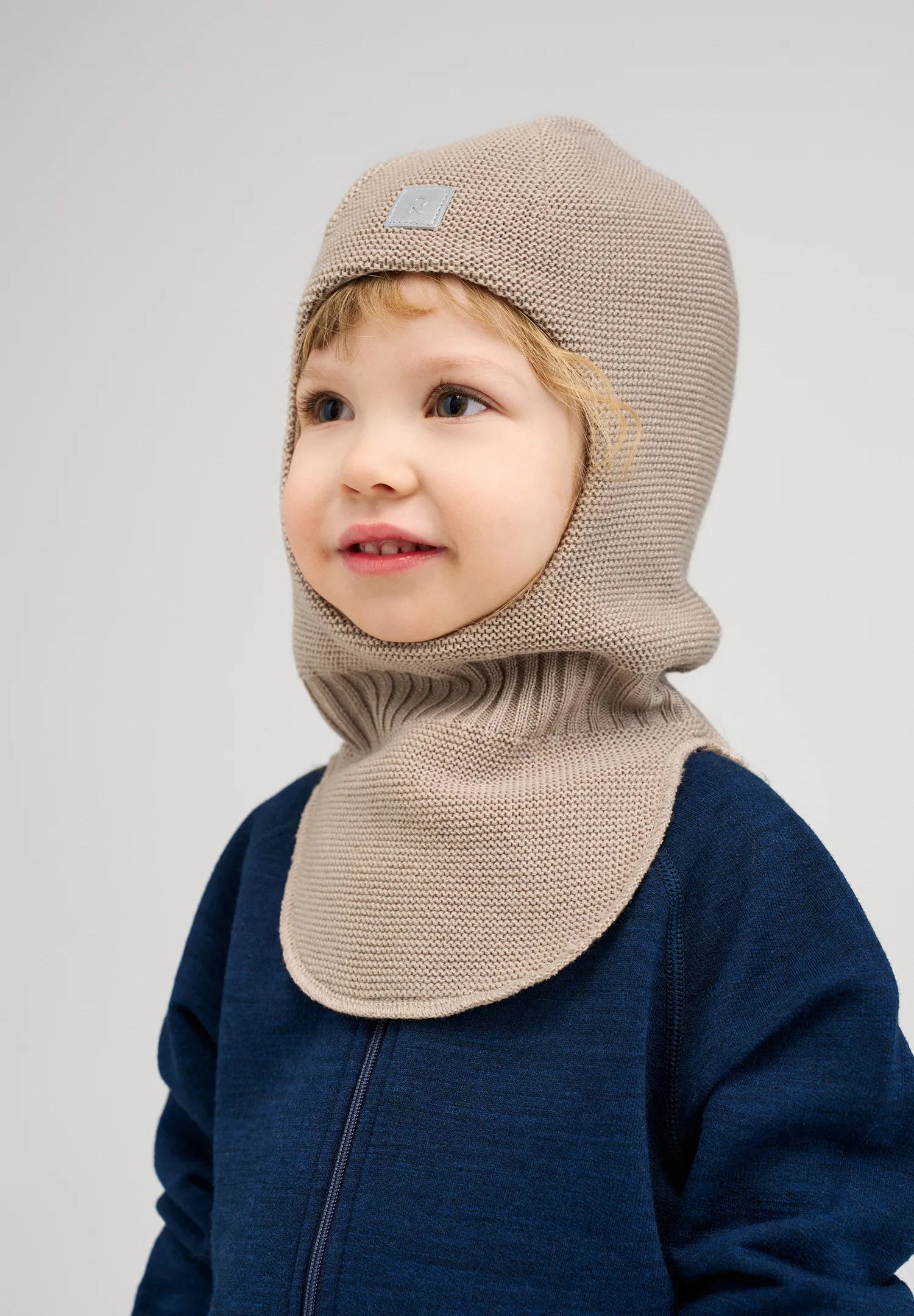Эта шапка-шлем для малышей и детей постарше связана из теплой шерсти и подшита мягкой на ощупь подкладкой из смеси хлопка и эластана, которая удобно облегает голову. Ветронепроницаемые вставки в области ушей, вшитые между подкладкой и верхним слоем, защищают ушки от холодного ветра. Эта классическая модель хорошо закрывает лоб, щечки и шею.