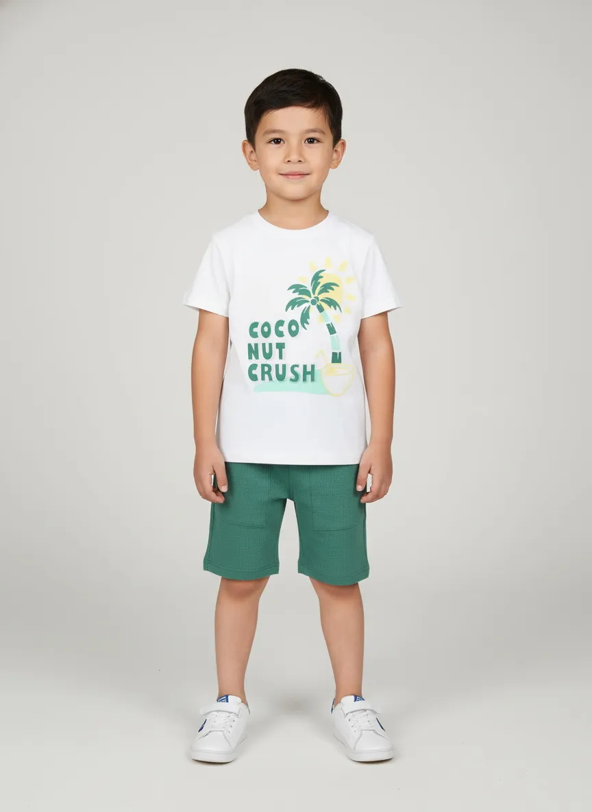 Комплект футболка к/р + шорты Orchestra для мальчика — удобный и практичный вариант для тёплой погоды и активных прогулок. Футболка с коротким рукавом украшена ярким принтом по центру, который делает образ стильным и привлекательным. Шорты имеют эластичный пояс со шнурком для комфортной посадки и два передних косых кармана, что добавляет модели удобства и функциональности. Состав: 100% хлопок — мягкая, дышащая и приятная к коже ткань, обеспечивающая комфорт ребёнку в течение всего дня.