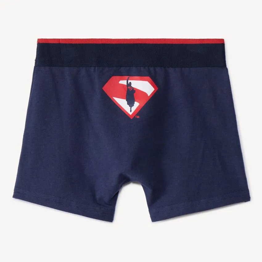 Комплект из 3 трусов-боксеров из мягкого хлопкового джерси с принтами по лицензии Супермена. Удобный эластичный пояс красного цвета с контрастной отделкой обеспечивает надёжную посадку. Прострочка в области паха добавляет комфорта на каждый день.