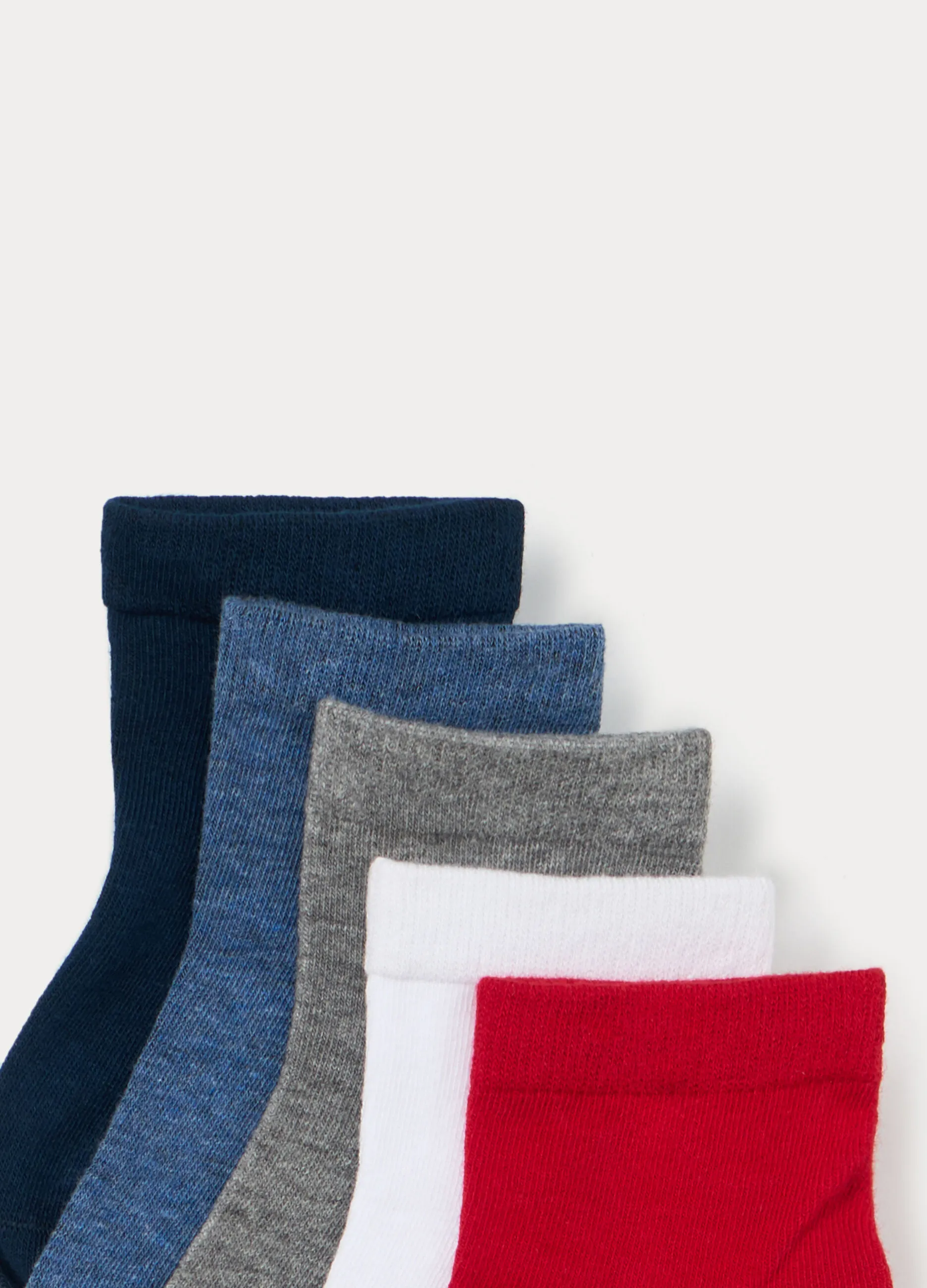 Набор из 5 пар носков для мальчика — удобное решение на каждый день. Мягкий и приятный к коже материал обеспечивает комфорт в течение всего дня, а эластичная резинка хорошо фиксирует носок на ноге, не сдавливая. Носки отлично подходят для школы, прогулок и активных игр. Практичный комплект на каждый день, который легко сочетать с любой обувью.