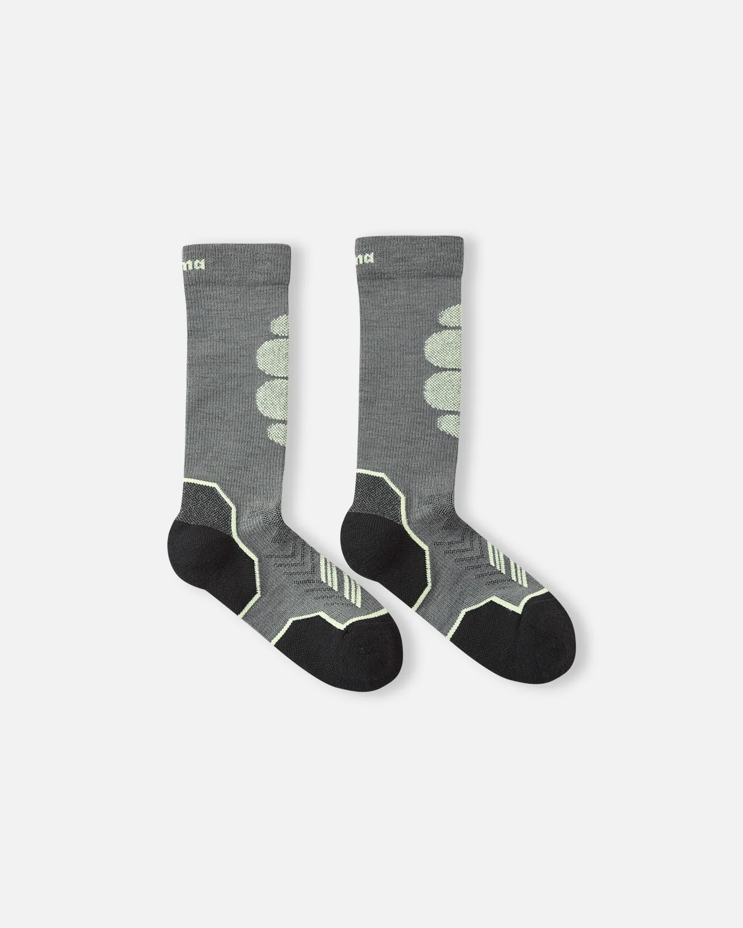 Носки изготовлены из роскошной смеси с мериносовой шерстью, которая сохраняет тепло даже во влажном состоянии. Мягкая и тёплая махровая изнанка обеспечивает непревзойдённый комфорт, а усиленные подошва, пятка и носок в сочетании с синтетическими волокнами повышают износостойкость. Идеальны для холодной погоды и особенно для ношения с водонепроницаемой обувью