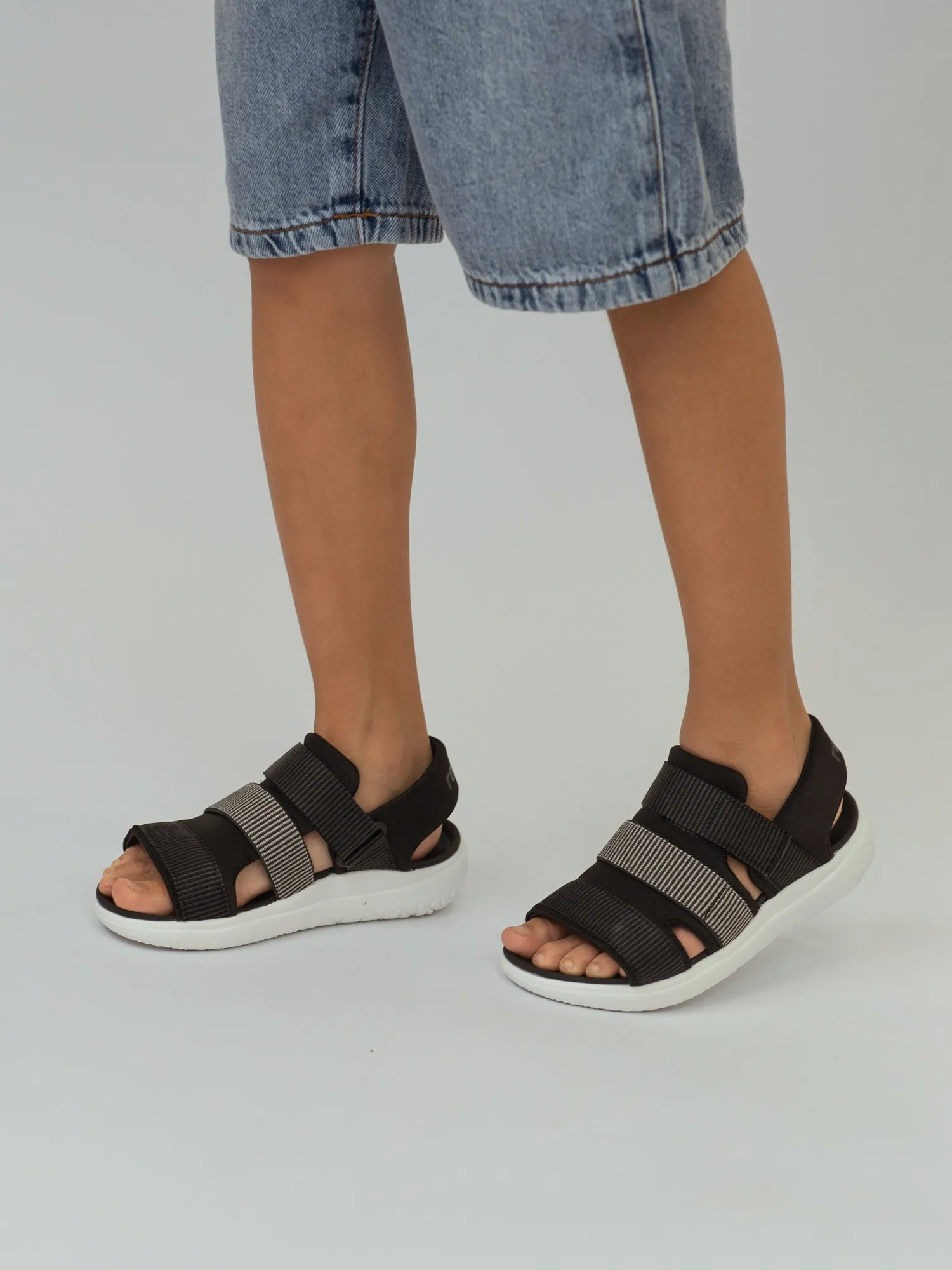 Подошва из EVA гибкая и легкая, а это значит, что дети могут с легкостью отправиться в летние приключения. Удобная застежка на липучке позволяет детям быстро научиться одевать эту обувь без посторонней помощи. Верх изготовлен из переработанных материалов и имеет гладкую подкладку, которая очень приятна на ощупь.