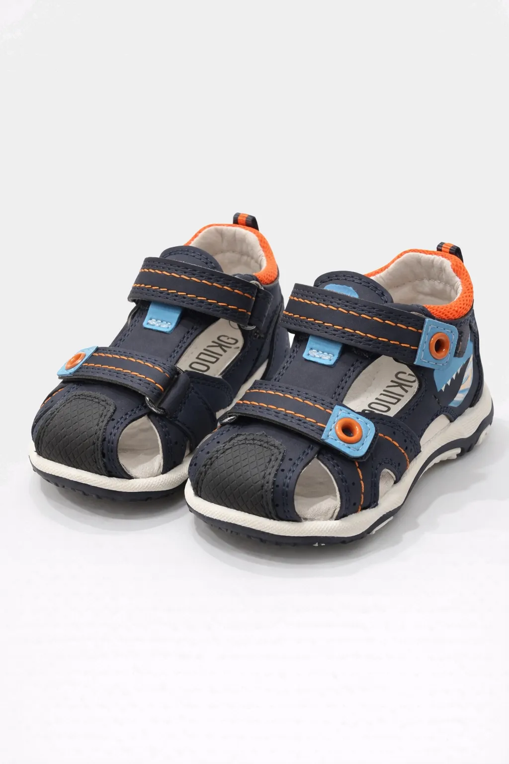 Сандалии Okids для малыша, выполненные из экокожи и текстиля, с подкладкой и стелькой из натуральной кожи для максимального комфорта. Устойчивая подошва из ТПР обеспечивает отличную амортизацию и долговечность.