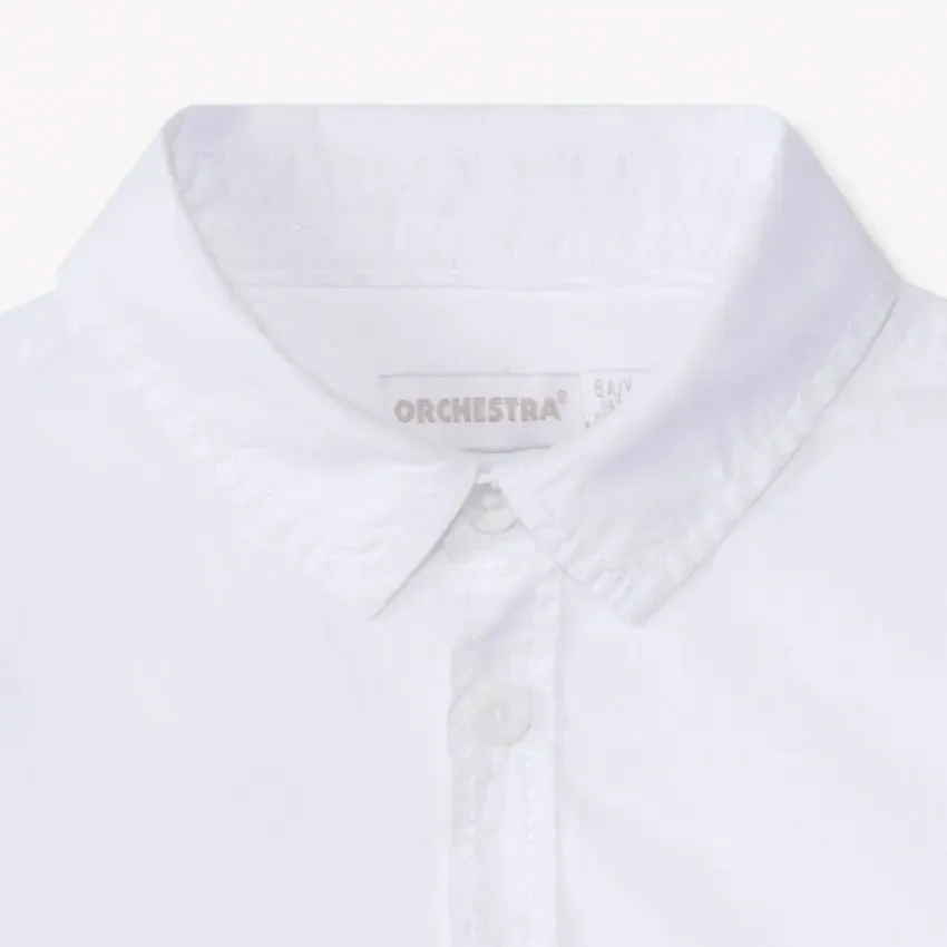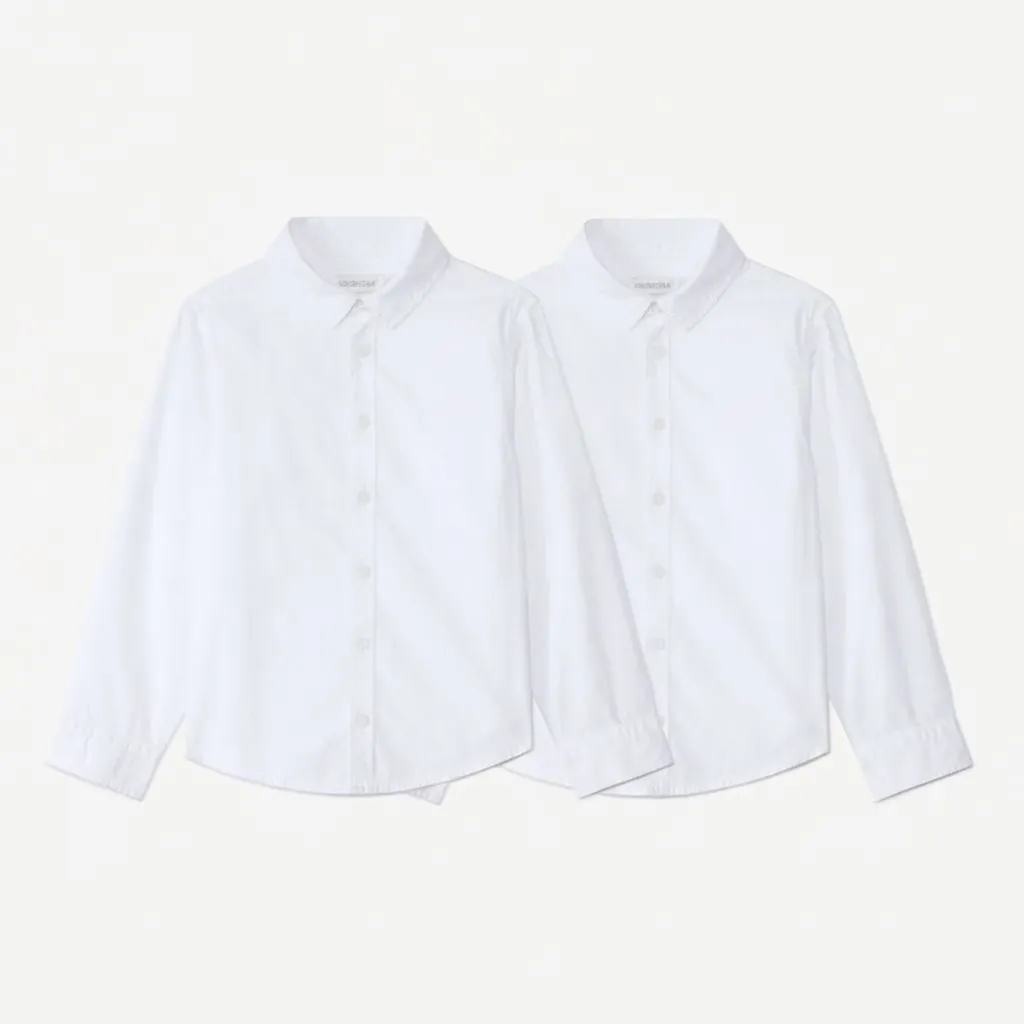 Набор из 2-х классических белых рубашек — базовый элемент гардероба для мальчика, подходящий на каждый день и для особых случаев. Лаконичный дизайн с аккуратным воротником и застёжкой на пуговицы делает модель универсальной: рубашки легко сочетаются с брюками, жилетами, джемперами и школьной формой. Длинные рукава обеспечивают комфорт в прохладную погоду, а прямой крой не сковывает движения. Практичный комплект на смену — всегда под рукой свежая рубашка, идеально белая, опрятная и аккуратная.