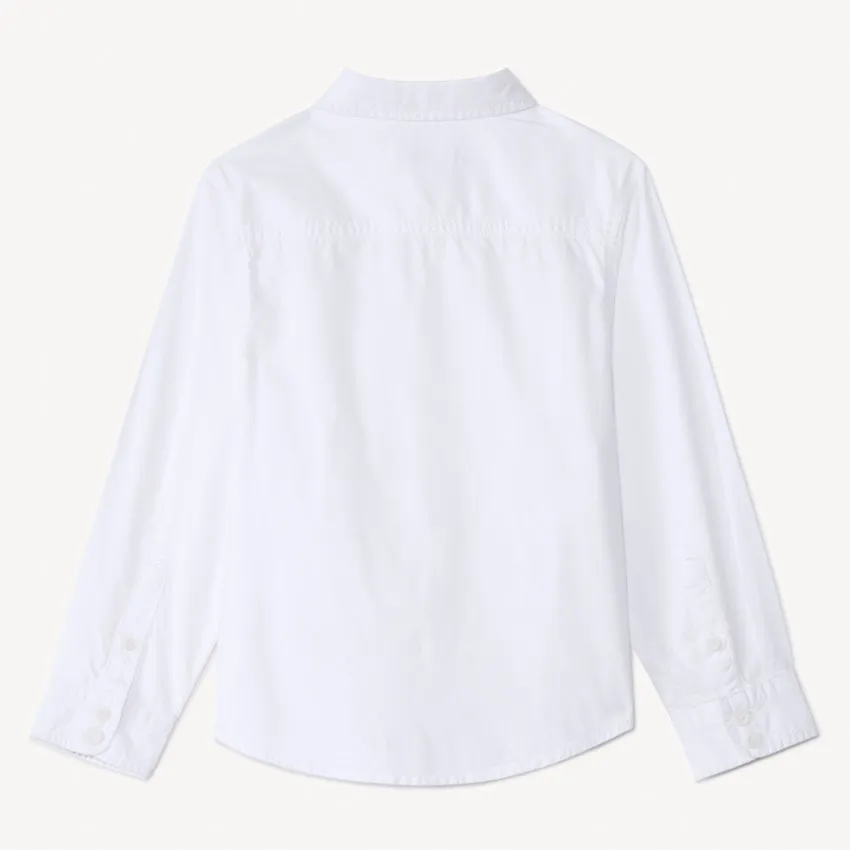 Рубашка для мальчика с длинными рукавами из 100% хлопка. Спереди застёгивается на пуговицы, манжеты также фиксируются пуговицами. Мягкий и комфортный материал подходит для повседневной носки и особых случаев.