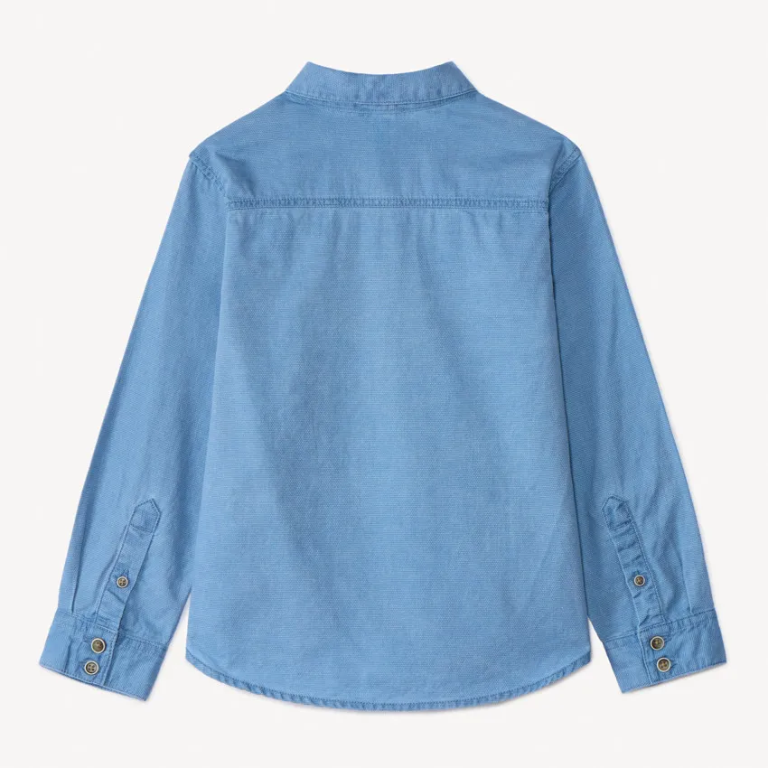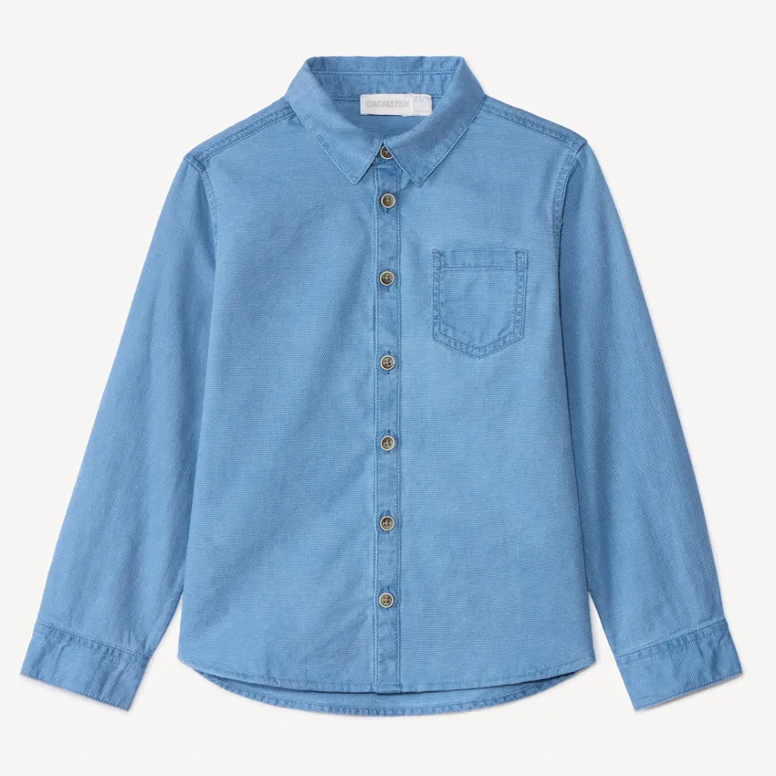 Рубашка для мальчика с длинными рукавами из 100% хлопка. Спереди застёгивается на пуговицы, манжеты также фиксируются пуговицами. Мягкий и комфортный материал подходит для повседневной носки и особых случаев.