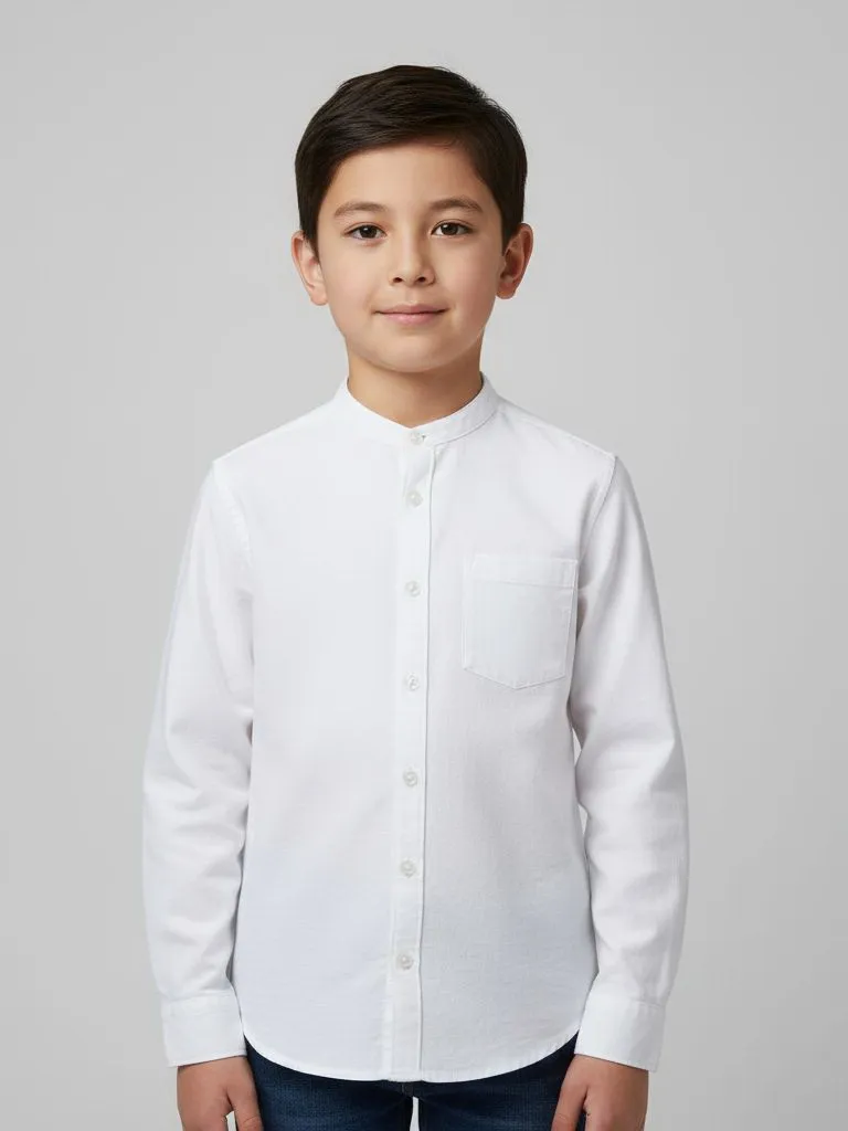 Лаконичная рубашка для мальчика выполнена в классическом белом цвете и станет универсальной вещью в гардеробе. Лёгкая ткань приятна к телу и обеспечивает комфорт в течение всего дня.