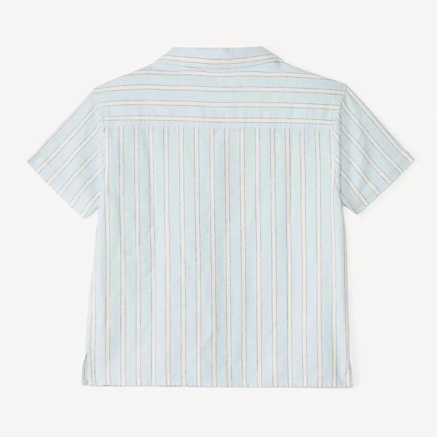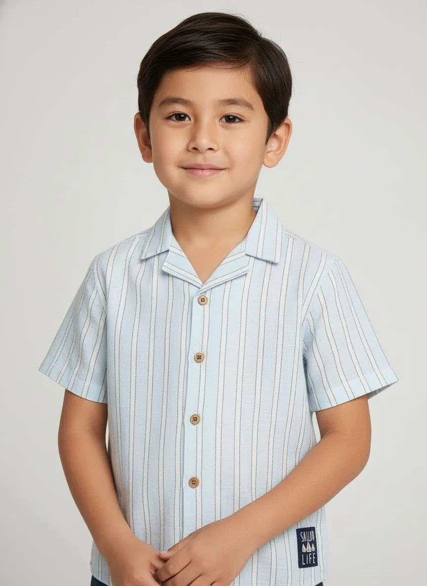 Стильная рубашка в светло-голубую полоску создаёт лёгкий и аккуратный образ для тёплой погоды. Модель выполнена из натурального хлопка, который приятен к телу и обеспечивает комфорт в течение всего дня.