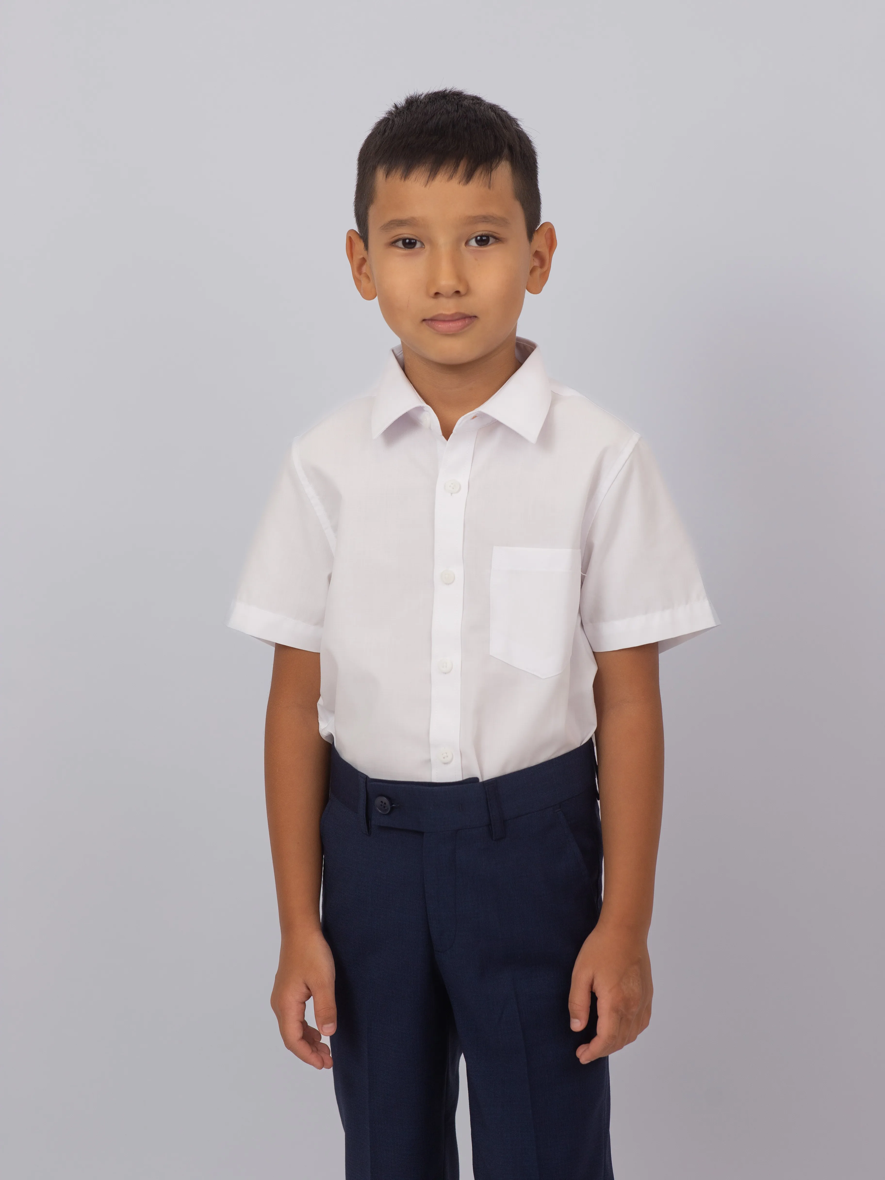 Школьная сорочка для мальчика с коротким рукавом выполнена из прочного и лёгкого материала: 85% полиэстер, 15% район, 4% спандекс. Такая ткань обладает хорошей износостойкостью, легко гладится и сохраняет аккуратный вид в течение дня, а небольшое добавление эластана обеспечивает свободу движений.