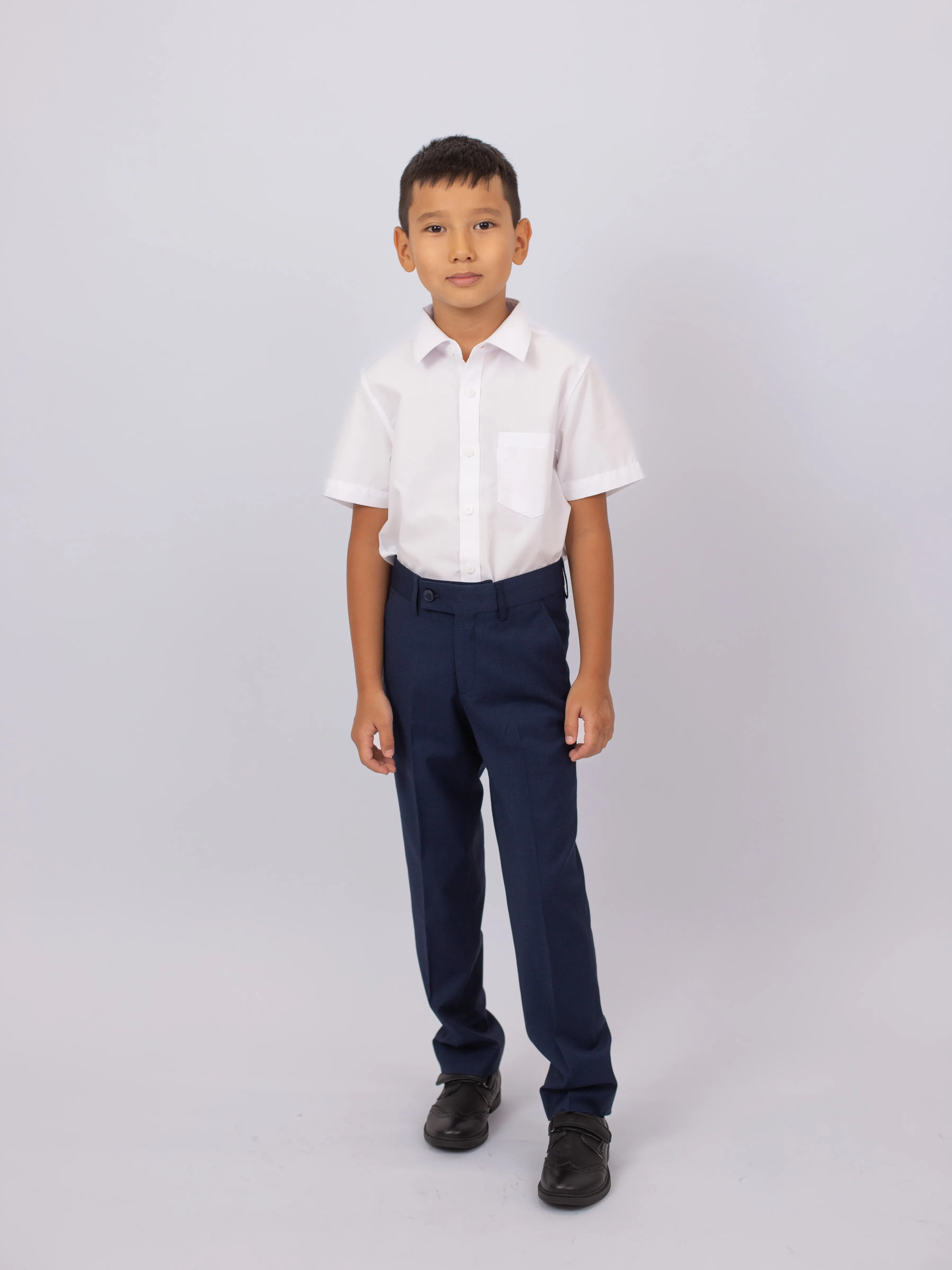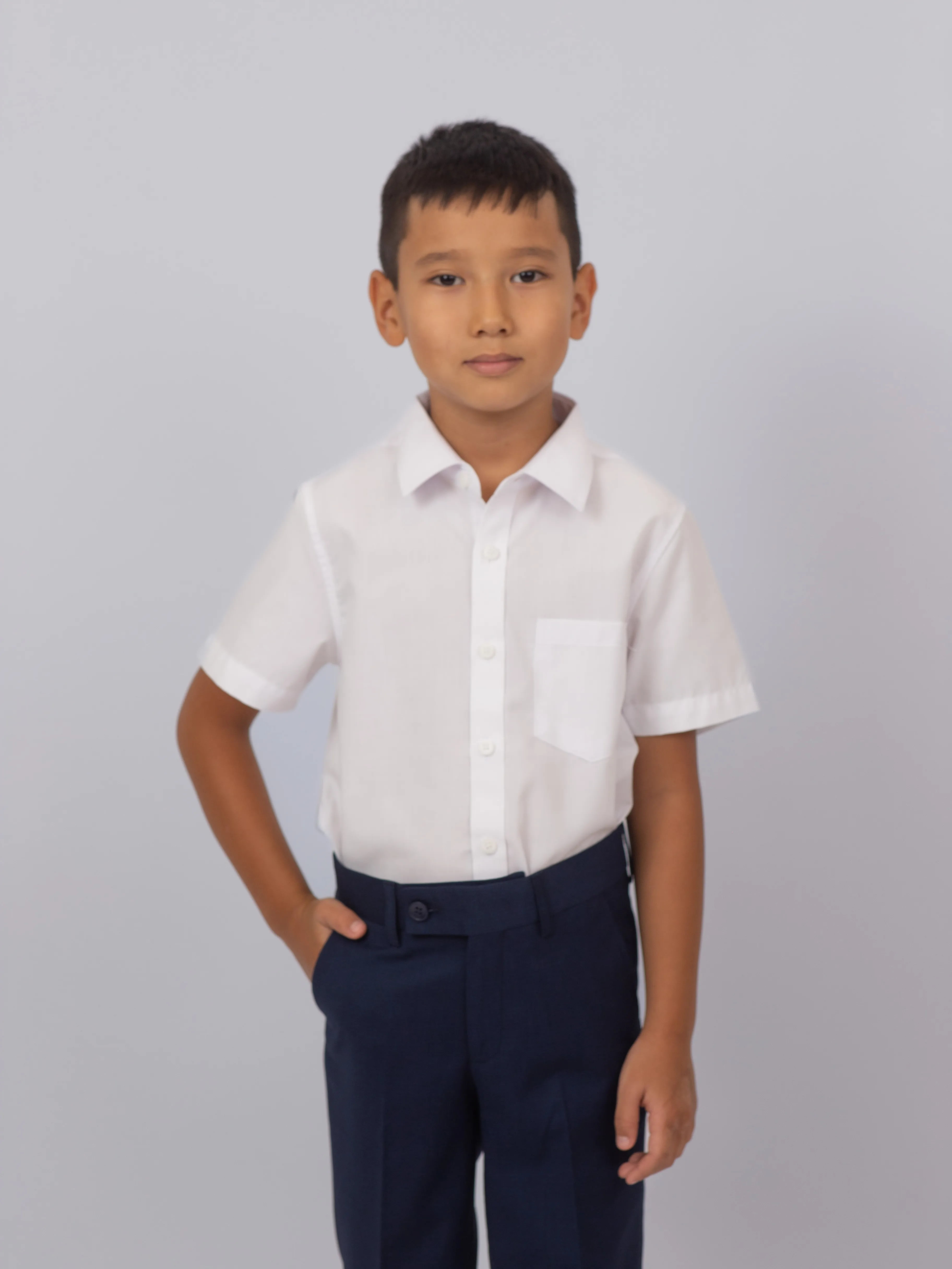 Классический крой с отложным воротником и нагрудным карманом делает сорочку практичной и удобной для ежедневной носки. Лаконичный дизайн соответствует школьному дресс-коду и легко сочетается с брюками, жилетом или пиджаком.