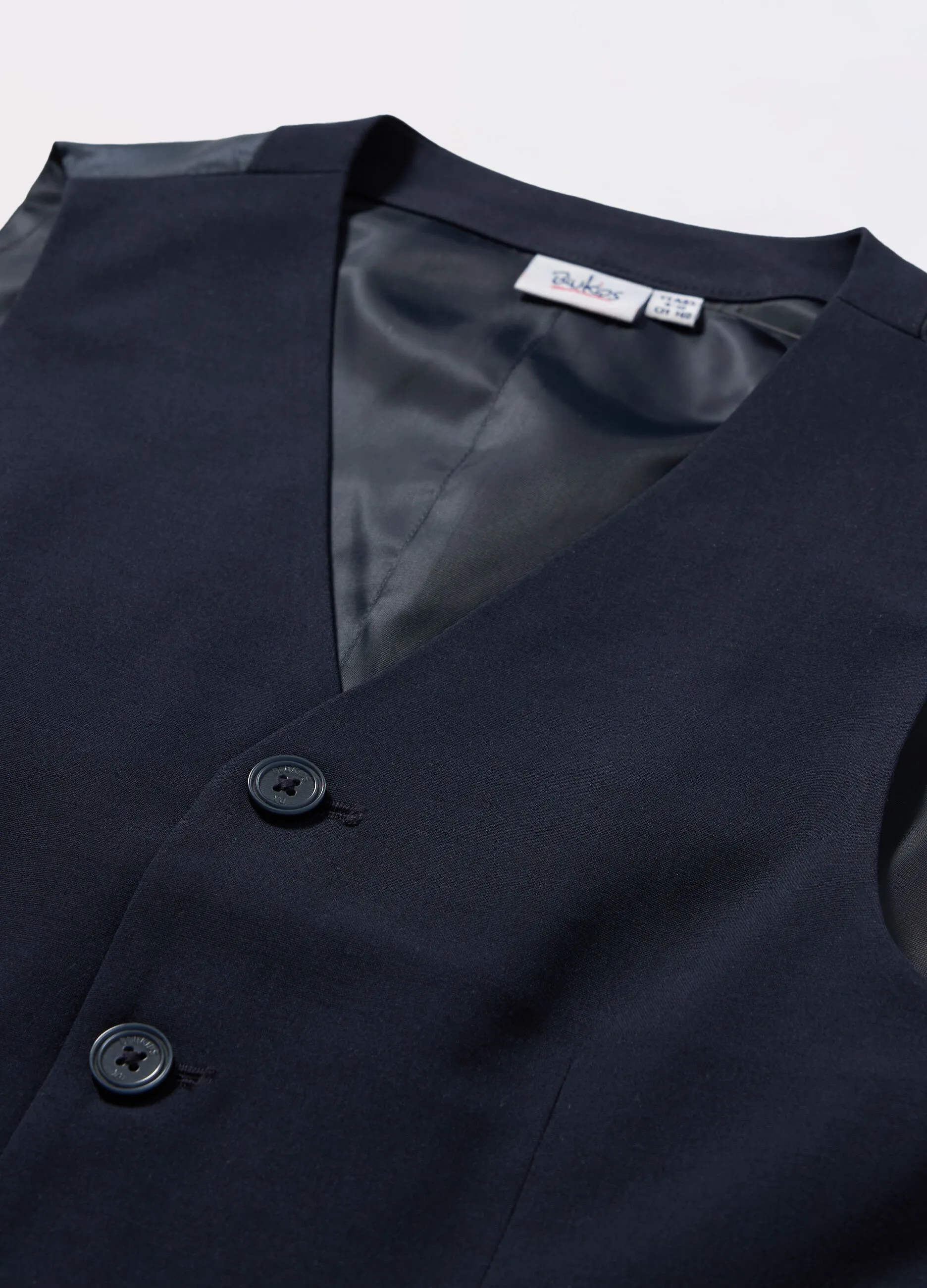 Стильный жилет, выполненный из ткани с полиэстером, шерстью и эластаном, идеально сочетает комфорт и стиль. Модель с V-образным вырезом и застёжкой на пуговицы добавит изысканности в любой образ. Два прорезных кармана спереди придают изделию практичность. Материал сохраняет форму, устойчив к внешним воздействиям и при этом обладает приятной эластичностью.