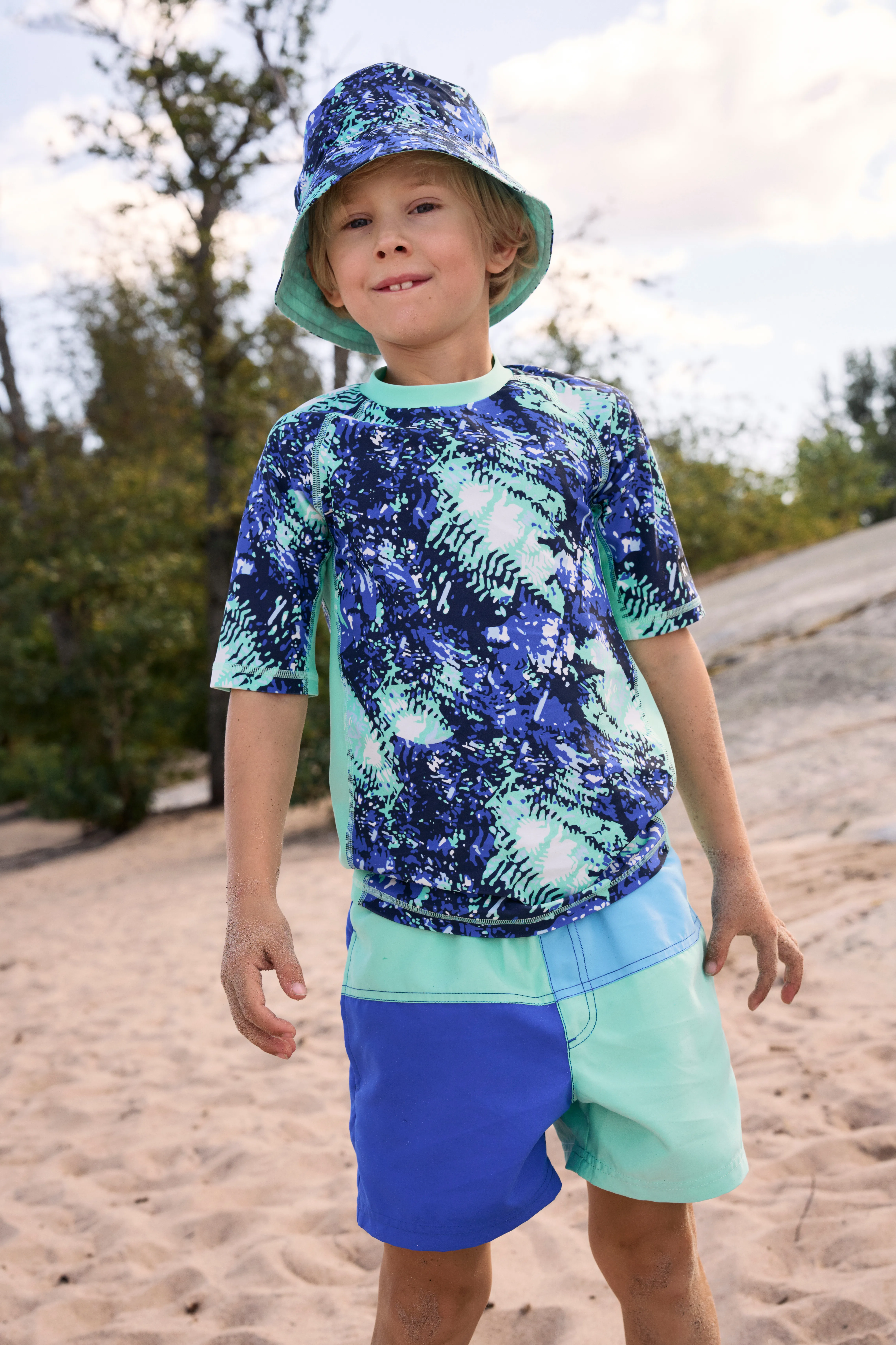 Эти детские плавки обеспечат комфорт и защиту вашего маленького искателя приключений во время игр на солнце и в воде. Быстросохнущий эластичный материал отводит лишнюю влагу от кожи и обеспечивает защиту от ультрафиолета до фактора SPF 50+, что позволяет дольше играть на улице.