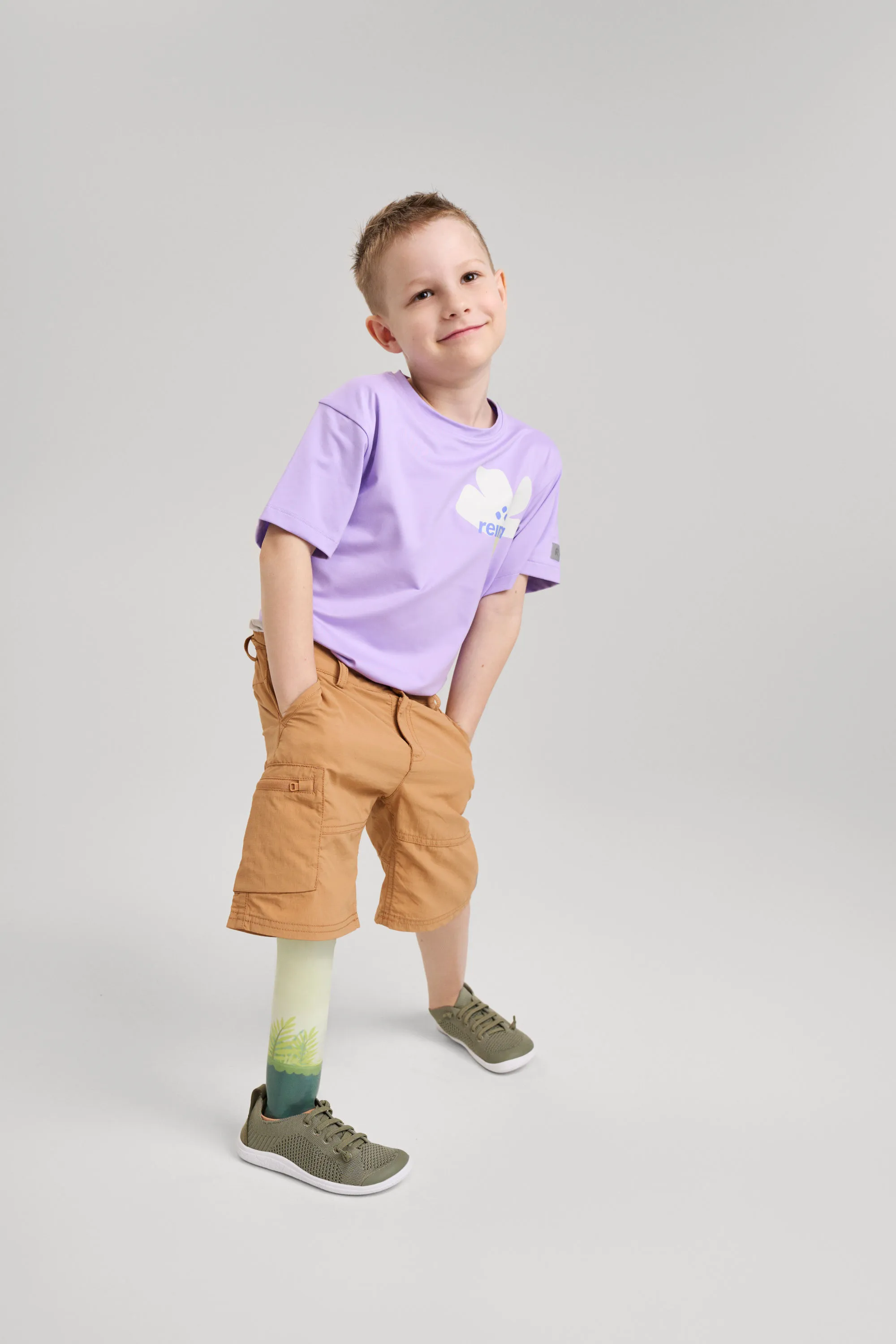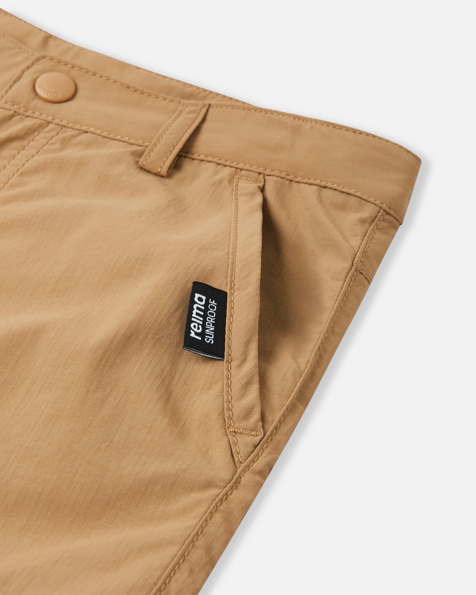 Шорты Eloisin Обеспечьте своему маленькому искателю приключений комфорт и защиту от солнца с помощью легких детских шорт Eloisin. Дышащая, быстросохнущая ткань и фактор защиты от ультрафиолета SPF 50+ позволяют часами играть на улице. Боковые карманы и набедренный карман на молнии надежно хранят все необходимое, а регулируемый эластичный пояс, передняя застежка на липучке и пуговице обеспечивают идеальную надежную посадку. Легкий в уходе материал. Содержит переработанные волокна с сертификатом качества