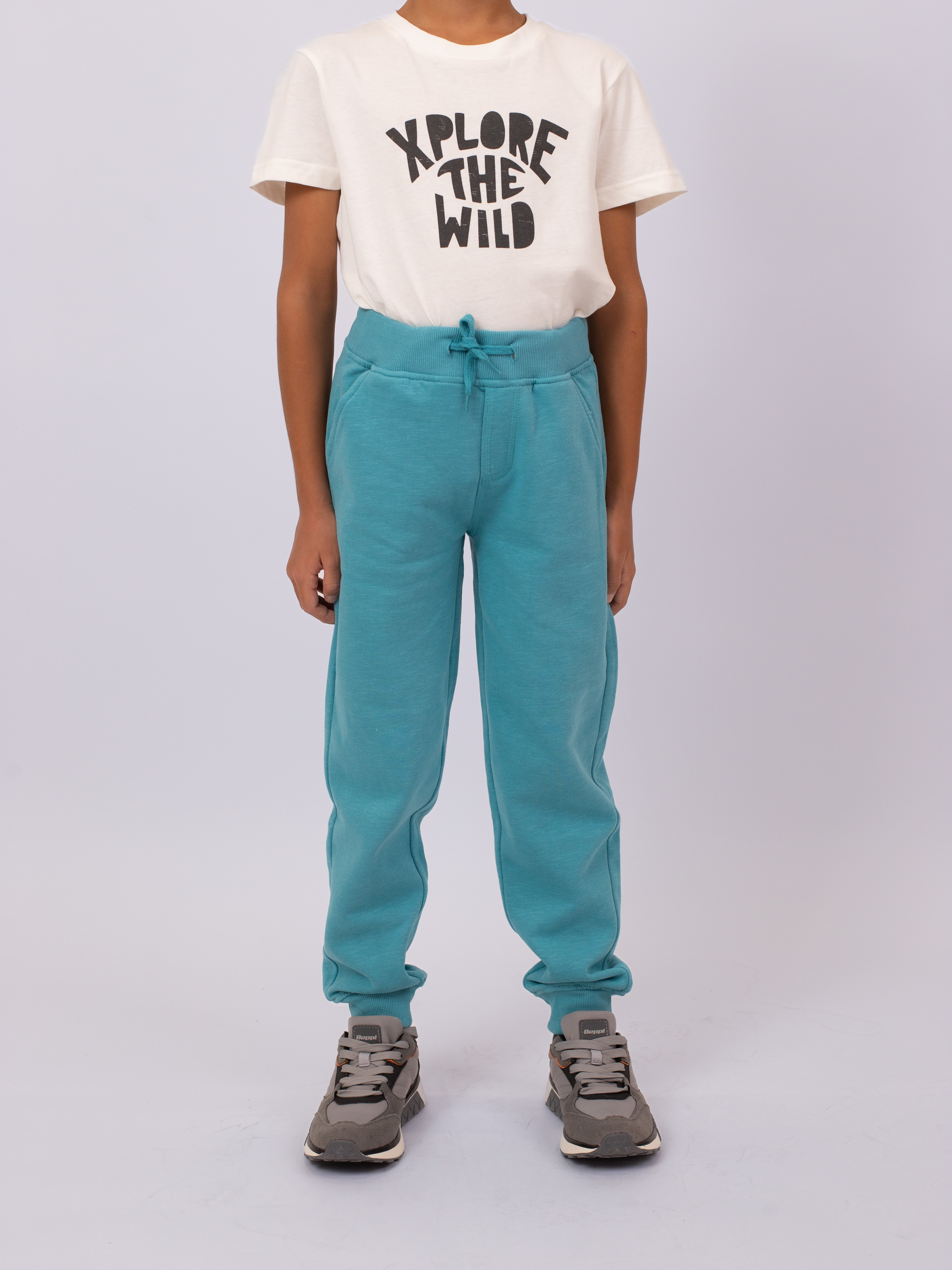 Флисовые спортивные брюки для мальчика с эластичным поясом на шнурке, двумя прорезными карманами спереди и одним карманом сзади. Манжеты внизу обеспечивают комфортную посадку. Выполнены из мягкого материала (80% хлопок, 20% полиэстер), отлично подходят для активного отдыха и прогулок.