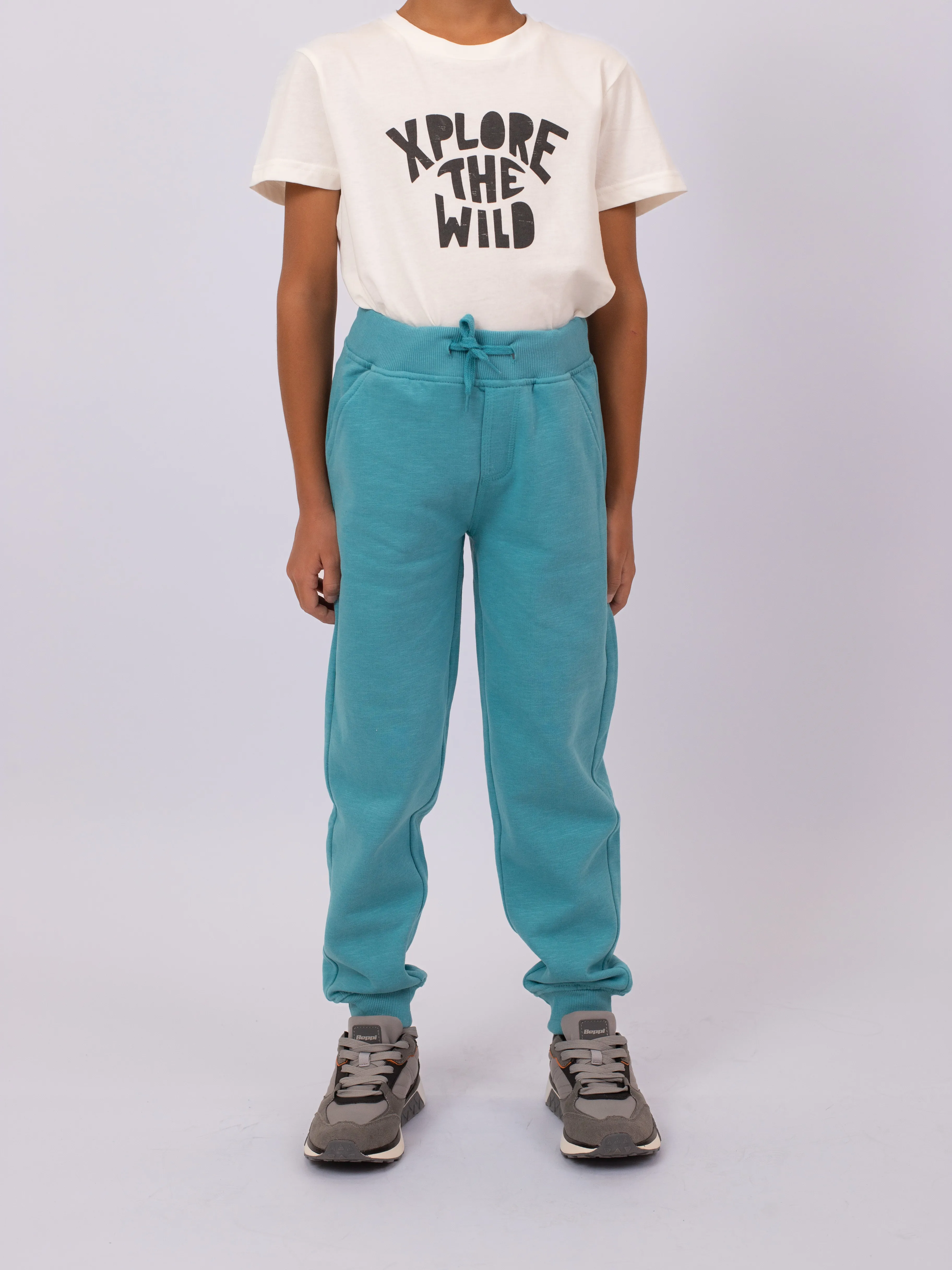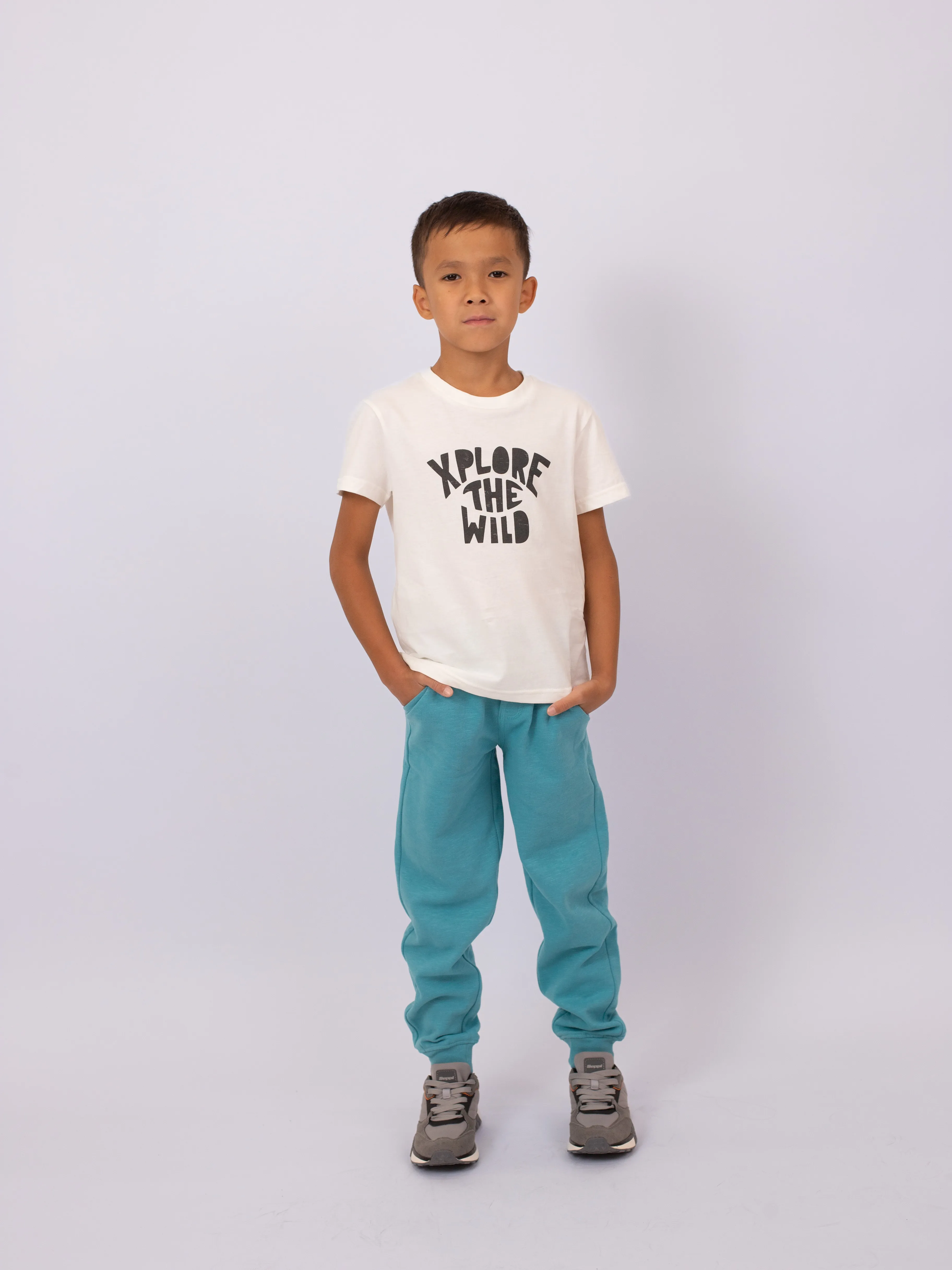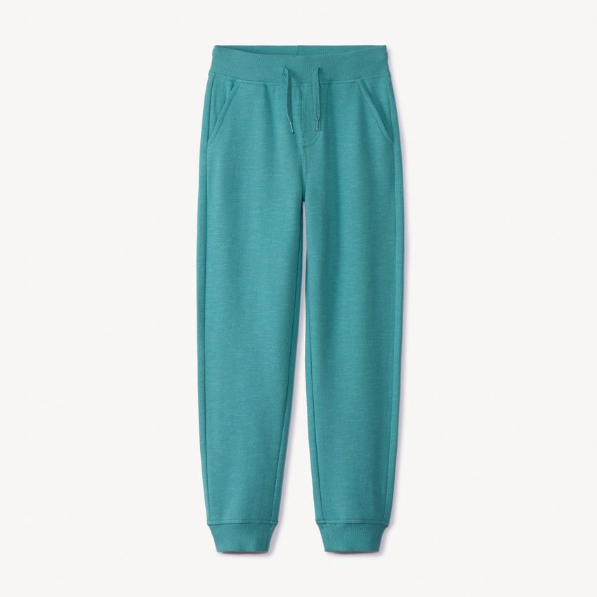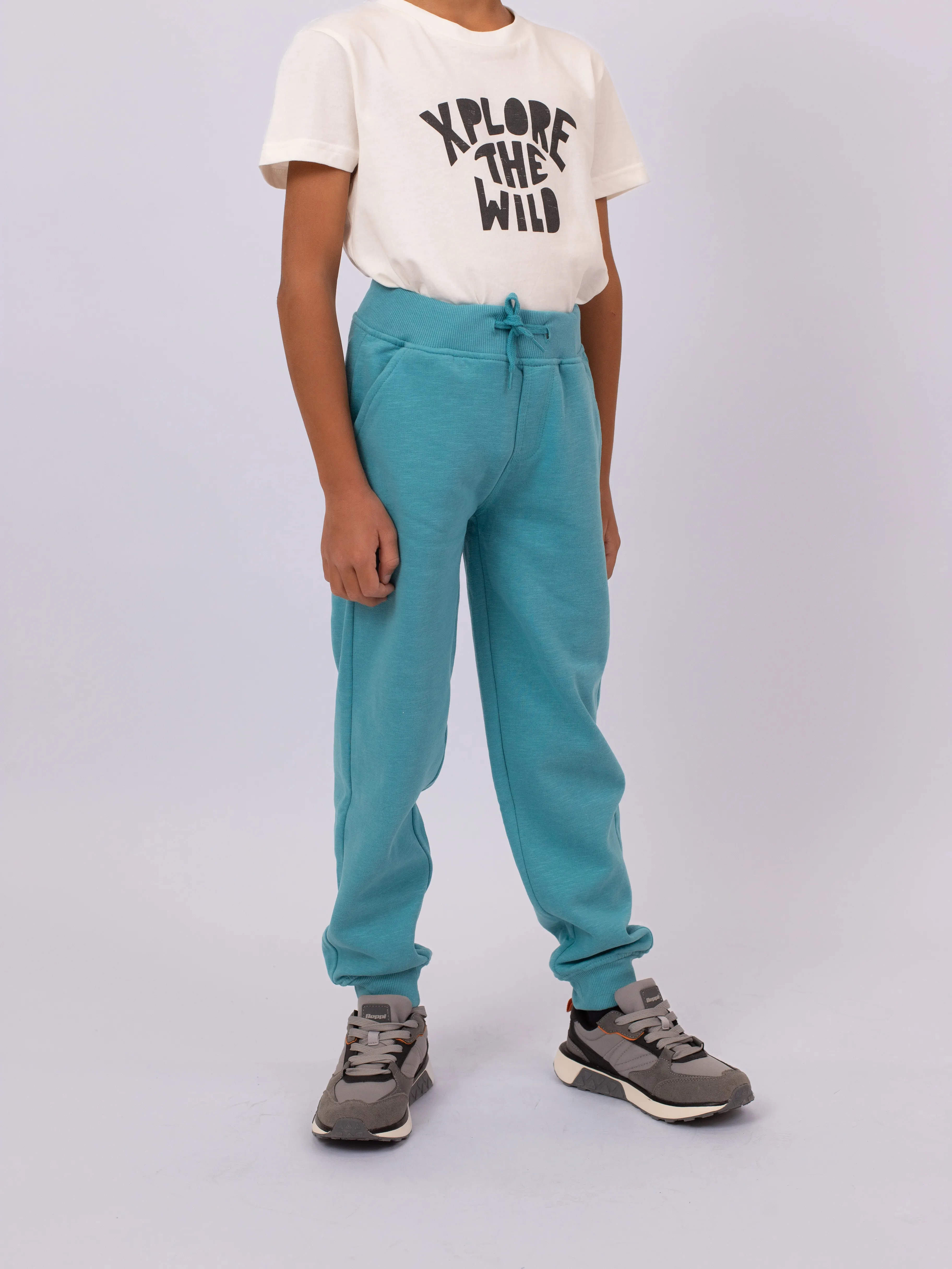 Флисовые спортивные брюки для мальчика с эластичным поясом на шнурке, двумя прорезными карманами спереди и одним карманом сзади. Манжеты внизу обеспечивают комфортную посадку. Выполнены из мягкого материала (80% хлопок, 20% полиэстер), отлично подходят для активного отдыха и прогулок.