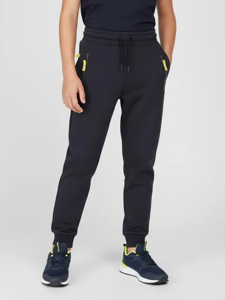 Спортивные штаны бренда Orchestra для мальчика выполнены из практичного и комфортного материала (86% полиэстер, 12% вискоза, 2% эластан), который обеспечивает свободу движений и удобство при носке. Модель дополнена двумя боковыми карманами на молнии для безопасного хранения мелочей. Эластичный пояс со шнурком позволяет легко регулировать посадку.