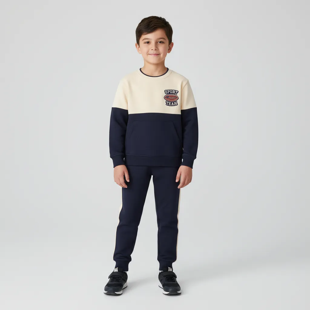 Спортивный костюм для мальчика — удобный и практичный вариант для повседневной носки. Толстовка с надписью по центру и функциональным кенгуру-карманом обеспечивает комфорт и уют. Спортивные брюки с эластичным поясом и регулируемым шнурком хорошо сидят и не сковывают движения. Подходит для прогулок, активных игр и отдыха.