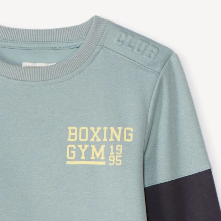 Свитшот имеет стильный принт на груди и удобные манжеты, которые сохраняют тепло и не дают задувать холодному воздуху.