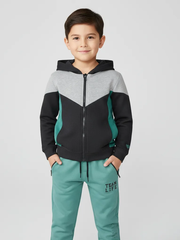 Флисовая толстовка для мальчика — тёплый и комфортный вариант для прохладной погоды. Модель выполнена с манжетами, которые обеспечивают удобную посадку и помогают сохранять тепло. На рукаве расположена аккуратная эмблема, придающая образу стильный акцент.