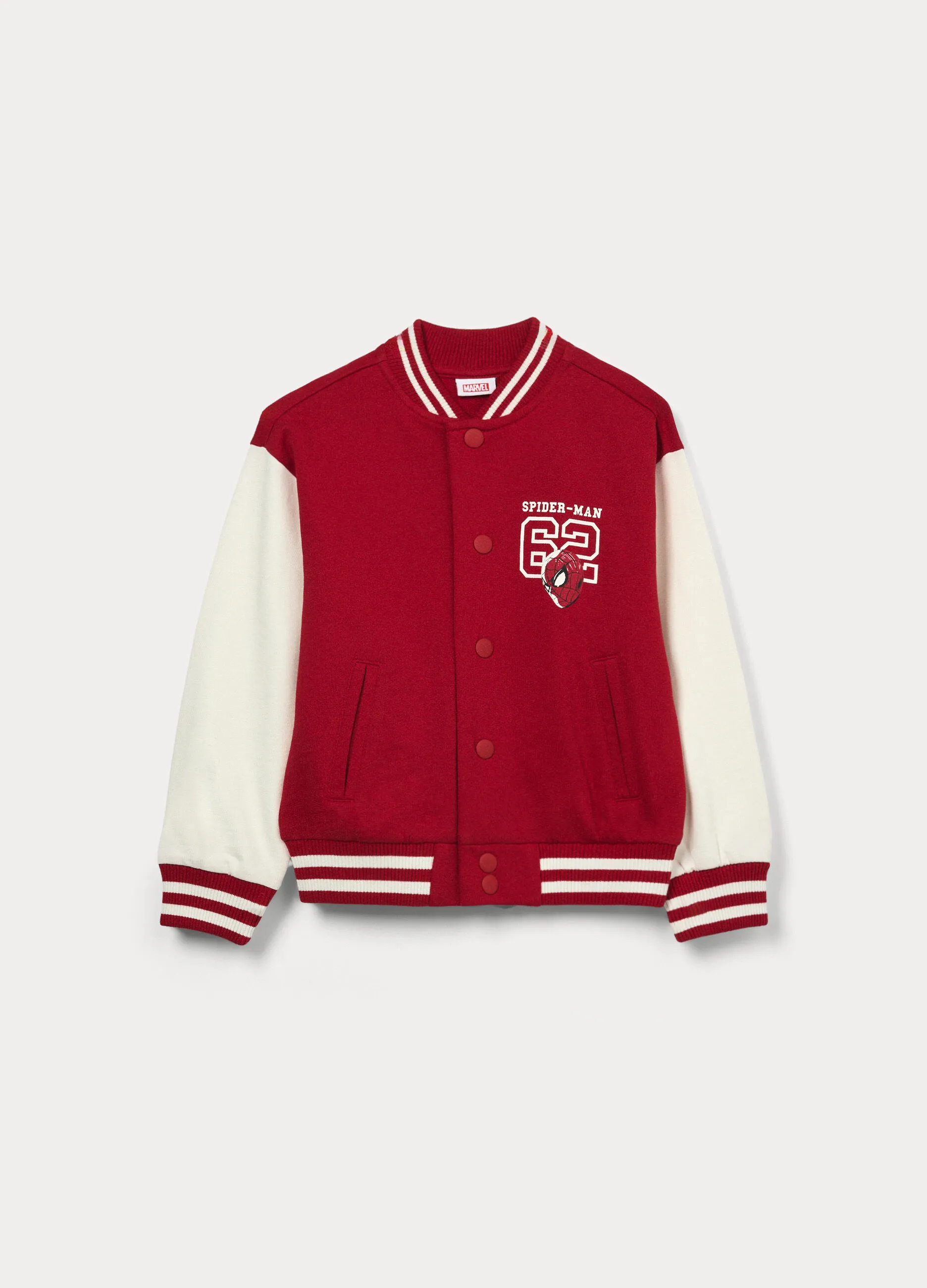 Стильный бомбер для мальчика из 100% хлопка — комфортный и практичный вариант для повседневных образов. Мягкий хлопковый материал приятен к телу и хорошо пропускает воздух. Классический крой с кнопочной застёжкой, эластичные манжеты и нижний край обеспечивают удобную посадку и защиту от прохлады. Контрастные рукава и фирменный принт Spider-Man добавляют образу яркий спортивный характер. Отлично подходит для прогулок и активного отдыха.