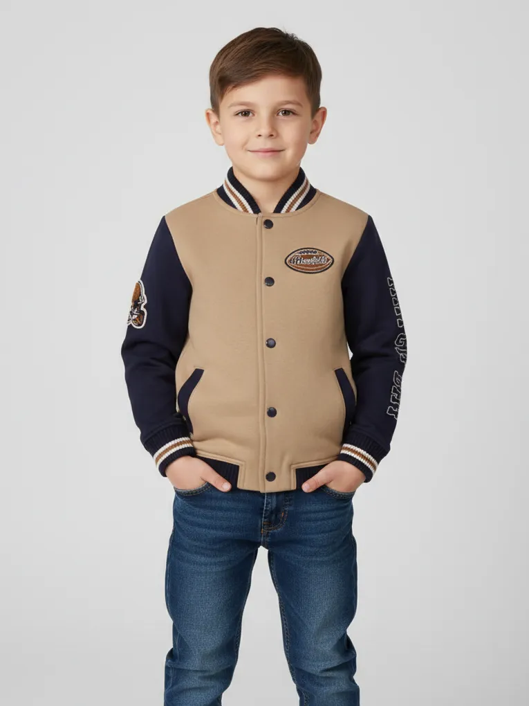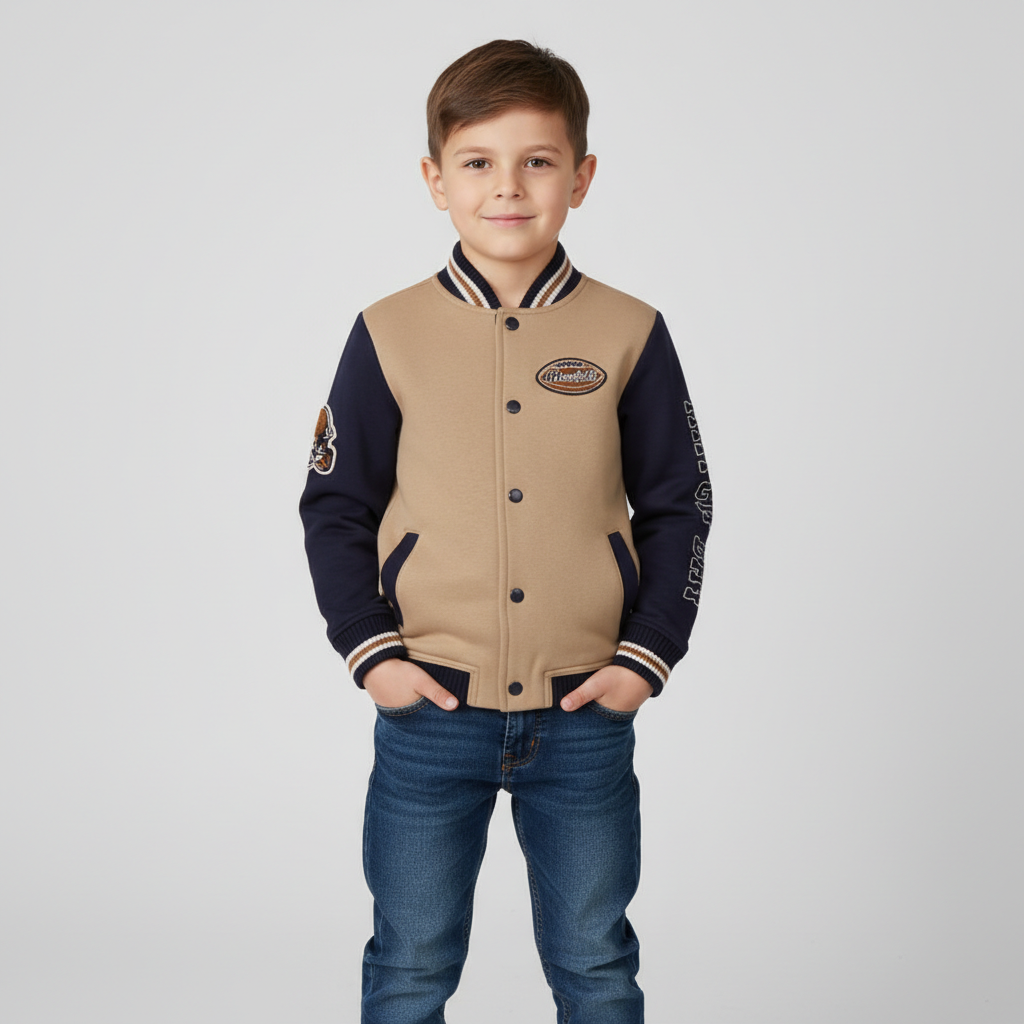 Флисовый бомбер для мальчика в американском стиле — стильная и комфортная модель для прохладных дней. Выполнен из мягкого флиса с оптимальным составом 60% хлопок, 40% полиэстер, благодаря чему хорошо сохраняет тепло и приятен к телу.