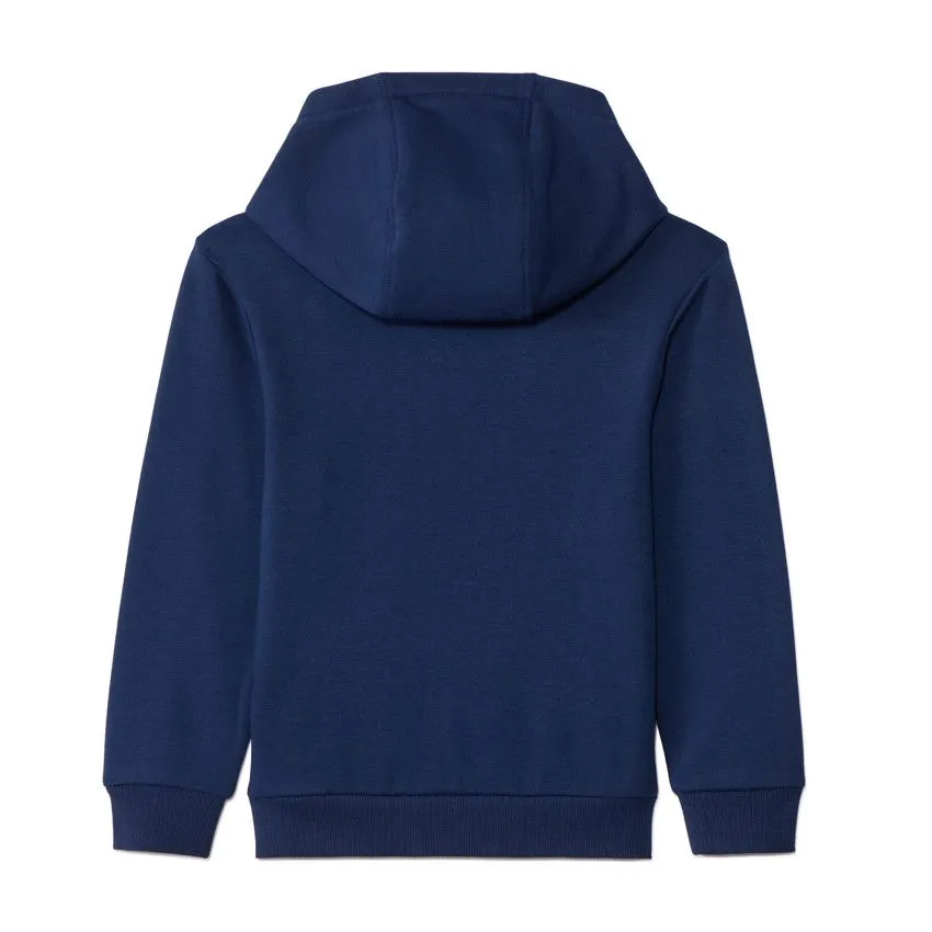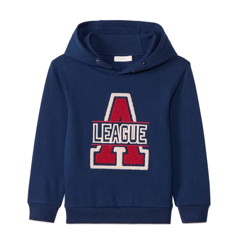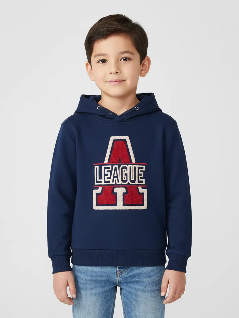 Флисовое худи для мальчика — тёплый и комфортный вариант для прохладной погоды. Модель выполнена с манжетами, которые обеспечивают хорошую посадку и помогают сохранять тепло. По центру расположен вышитый принт, а на рукаве — аккуратная эмблема, придающие образу стильный акцент.