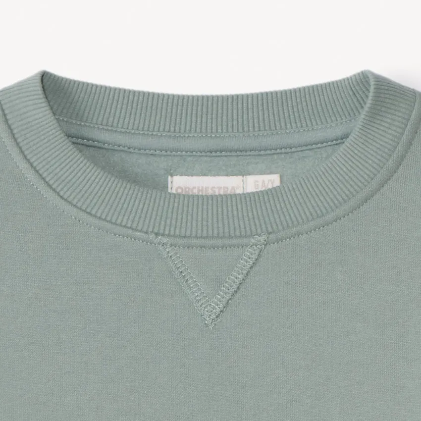 Уютный свитшот из мягкой флисовой ткани — отличный вариант для повседневной носки. Модель выполнена в однотонном цвете с круглым вырезом и эластичной отделкой в рубчик по горловине, манжетам и низу. Под горловиной — декоративная вставка в виде треугольного патча.