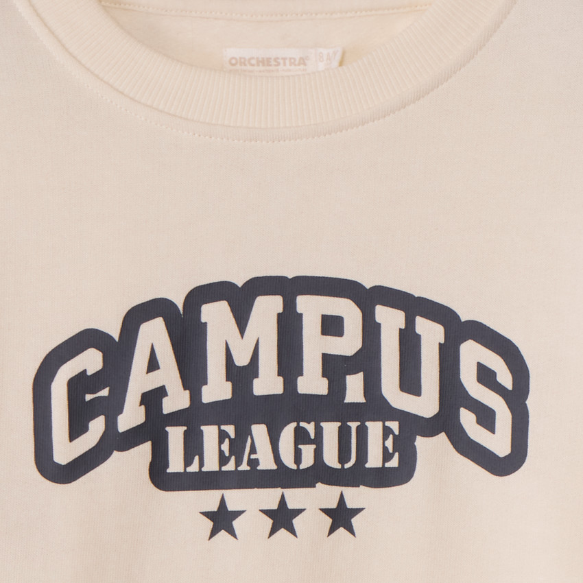 | Свитшот из мягкого футера в однотонном исполнении. Модель имеет круглый вырез с контрастной красной отделкой, расслабленные объёмные рукава и эластичные манжеты и низ для комфортной посадки. На передней части расположен декоративный принт, спинка выполнена полностью однотонной. Отличный выбор для повседневных образов и активных прогулок. |