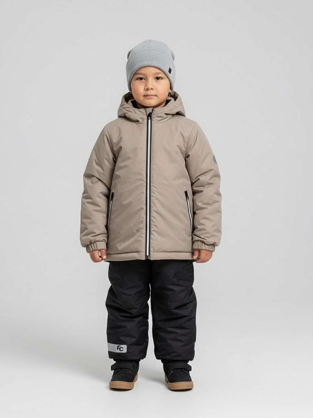 Утепление: куртка — биопух + холофайбер, брюки — холофайбер. Подкладка: в куртке — хлопок + полиэстер, в полукомбинезоне — 100 % полиэстер.