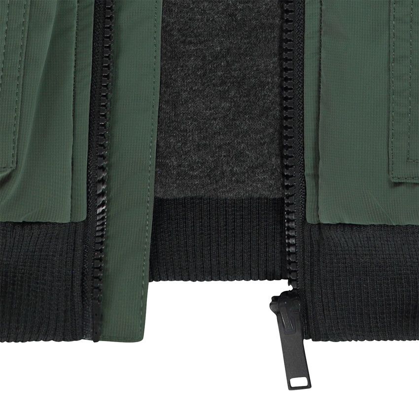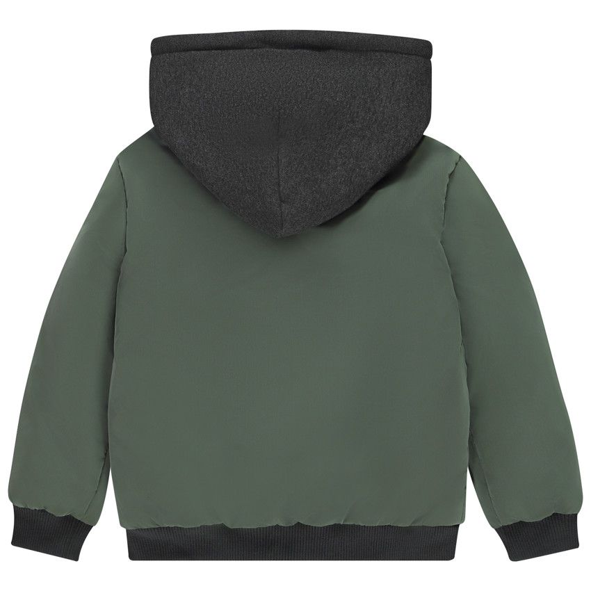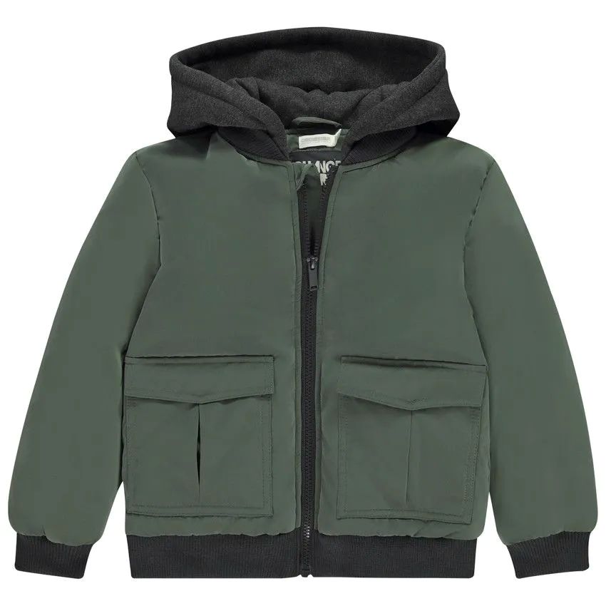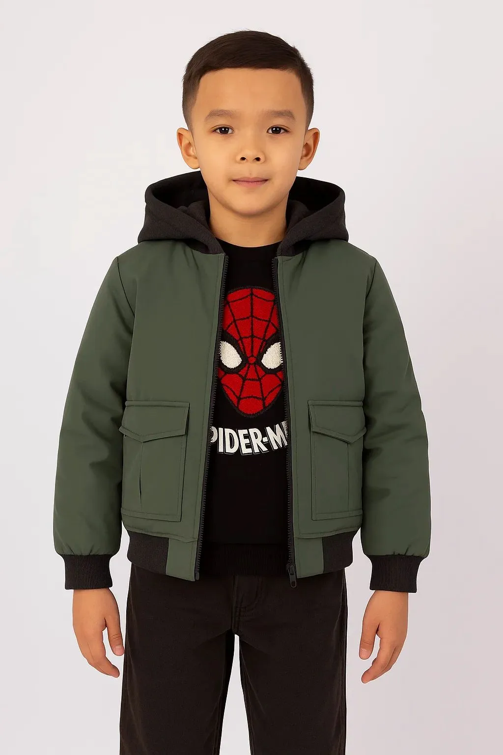 Тёплый и стильный бомбер для мальчика — отличное решение для прохладного сезона. Верх выполнен из прочного материала (100% полиэстер), с утеплённой подкладкой (65% полиэстер, 35% хлопок) и наполнителем из 100% переработанного полиэстера — надёжная защита от холода и ветра.