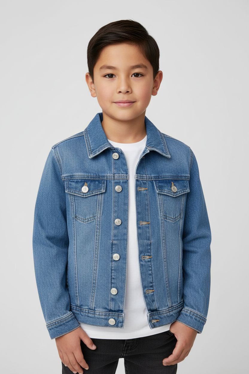 Стильная джинсовая куртка для мальчика выполнена из смесовой ткани с высоким содержанием хлопка, что делает её комфортной и приятной к телу. Добавление полиэстера и вискозы повышает износостойкость, мягкость и помогает куртке лучше держать форму. Классичный джинсовый крой с удобной посадкой не сковывает движений и подходит для активного повседневного ношения. Универсальная модель отлично сочетается с джинсами, брюками и спортивными образами, идеально подходя для весны и прохладных летних дней.