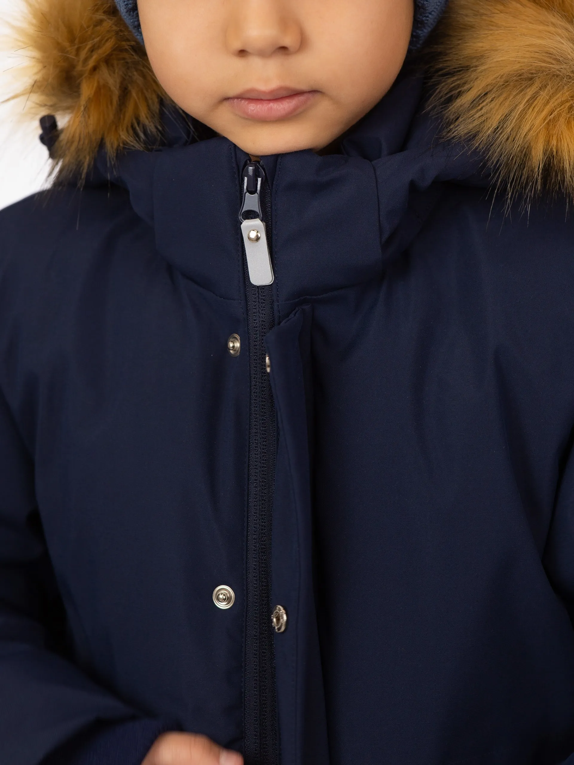 Зимняя парка для мальчиков — тёплая, лёгкая и надёжная модель, созданная специально для суровой и ветреной зимы. Поверхность выполнена из водостойкой и дышащей мембраны (5000), которая предотвращает промокание и поддерживает комфортный микроклимат внутри.