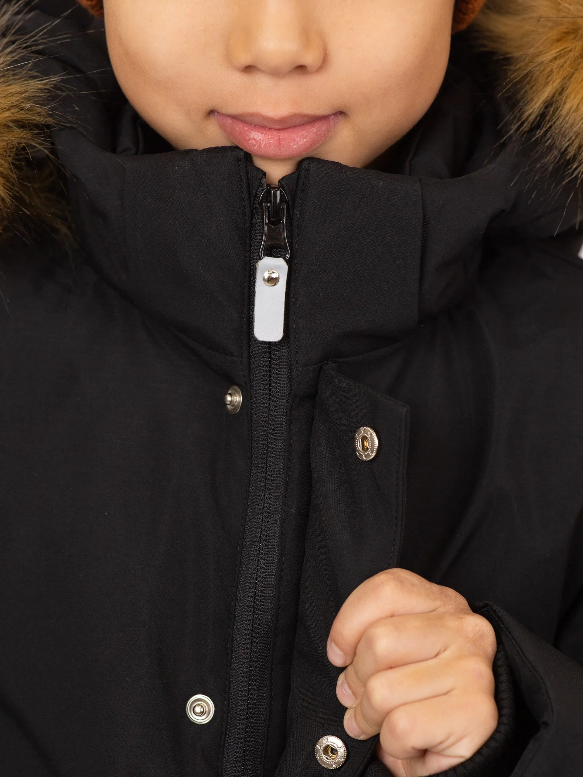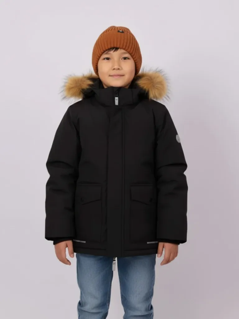 Зимняя парка для мальчиков — тёплая, лёгкая и надёжная модель, созданная специально для суровой и ветреной зимы. Поверхность выполнена из водостойкой и дышащей мембраны (5000), которая предотвращает промокание и поддерживает комфортный микроклимат внутри.