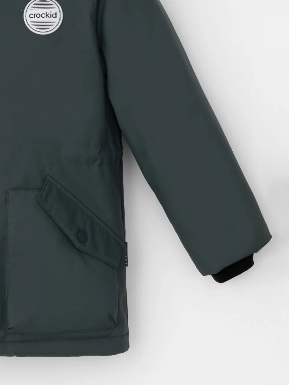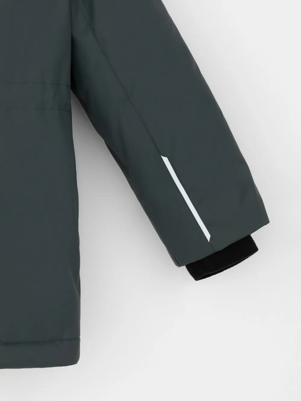Зимняя парка для мальчика с утеплителем SEE® плотностью 250 г/м² — надёжная защита от холода и влаги. Модель выполнена из прочной мембранной ткани с дополнительной тефлоновой обработкой, которая препятствует загрязнениям и эффективно отталкивает влагу.