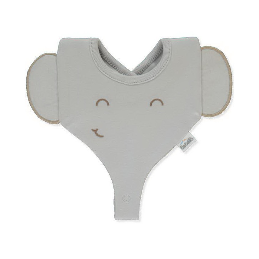 Милый нагрудник для малыша с изображением мордочки слоника. Декоративные ушки слегка выступают по бокам, а внизу — удлинённая деталь в виде хобота, добавляющая изделию очарования. Выполнен из мягкого материала, приятного к телу и удобного в носке.